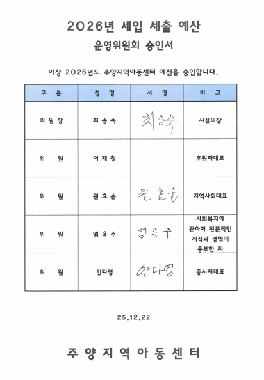 2026년 세입세출 예산안 공고