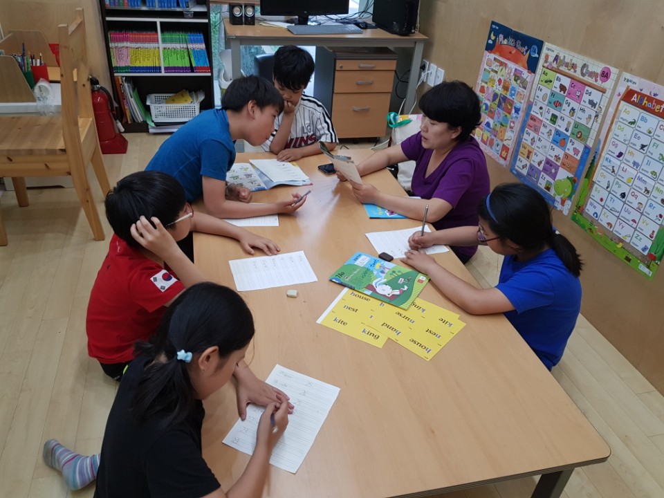 매주 월요일과 수요일에는 ky&g에서 후원하는 눈높이 영어를 통해 글로벌한 인재를 육성하기 위한 영어를 열심히 배우고 있답니다. 강사님이 안계셔도 그룹끼리 알아서 나머지 공부도 하고 있어요.