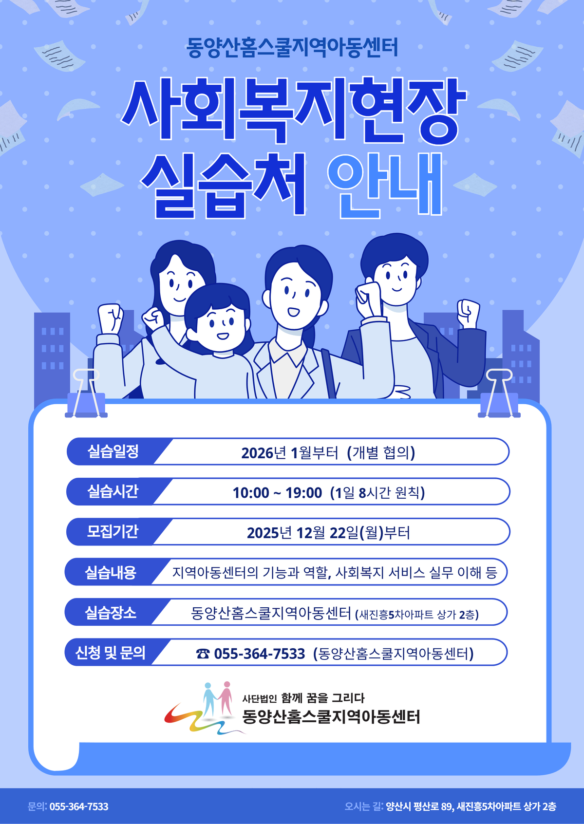 동양산홈스쿨지역아동센터 사회복지현장실습처 안내