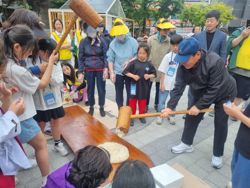 한마음 색소폰 동우회의 축하공연과 더불어 2부 행사로 평산동 모범 어르신 선물 전달식과 아동들의 감사한 마음을 담은 큰 절, 그리고 떡메치기 경험까지 풍성한 시간이 마련되었습니다.
