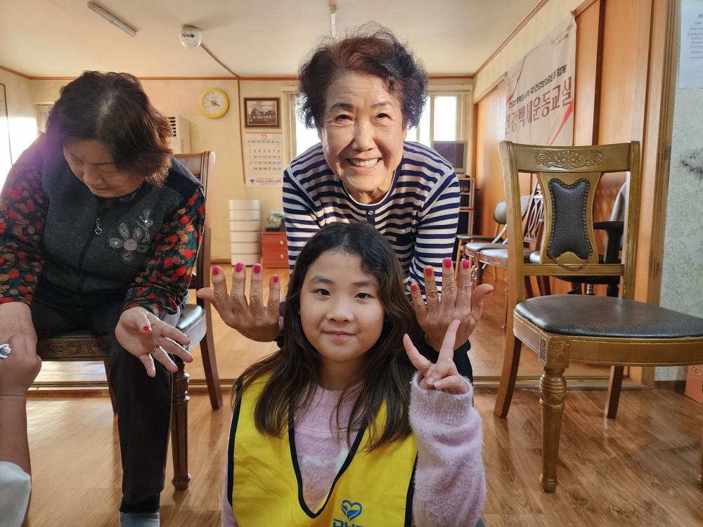 어르신들께서 원하시는 색상을 직접 고르시고, 아이들이 능숙하게 손톱을 정성껏 칠해드리니 “늙어서 호강한다.”, “내일 동창회 가는데 예쁘게 하고 가겠네.”, “손이 예뻐서 밥도 못하겠다.”라며 웃음과 함께 기분 좋은 말씀을 전해주셨습니다.