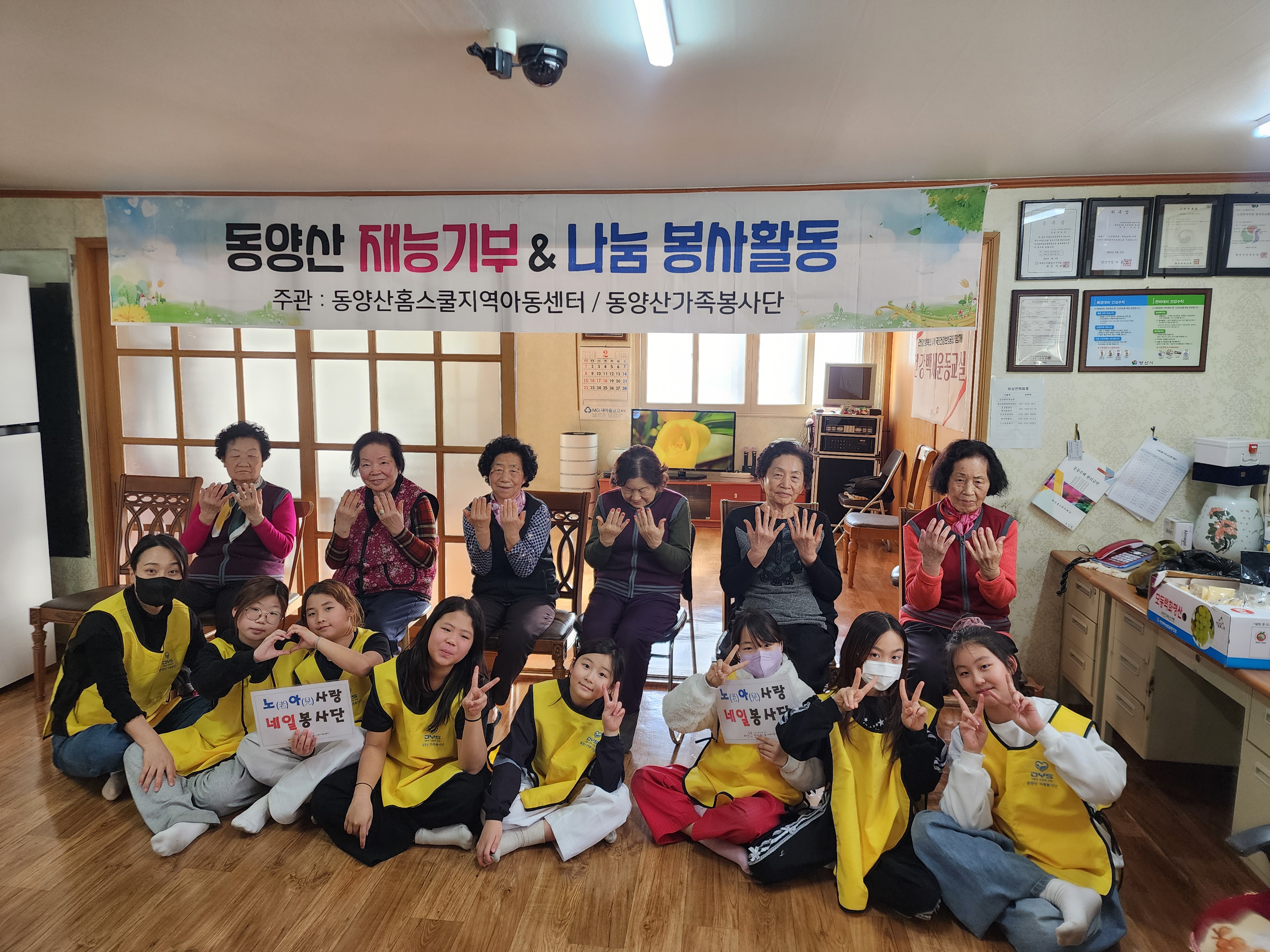 2026년 2월 6일(금) 네일재능기부 봉사단이 새진흥5차 경로당 어르신들을 방문하였습니다. 어르신들께 전달할 간식을 준비하여 함께 나누고, 원하시는 색상으로 손톱을 곱게 꾸며드리는 시간을 가졌습니다. 어르신들께서는 “누가 내 손을 이렇게 예쁘게 해주겠노”라며 고마운 마음을 전하시고, 아이들에게 따뜻한 감사 인사를 건네주셨습니다. 봉사활동을 마친 후에는 인근 놀이터에서 잠시 에너지를 발산하는 시간을 가진 뒤 센터로 복귀하였습니다.