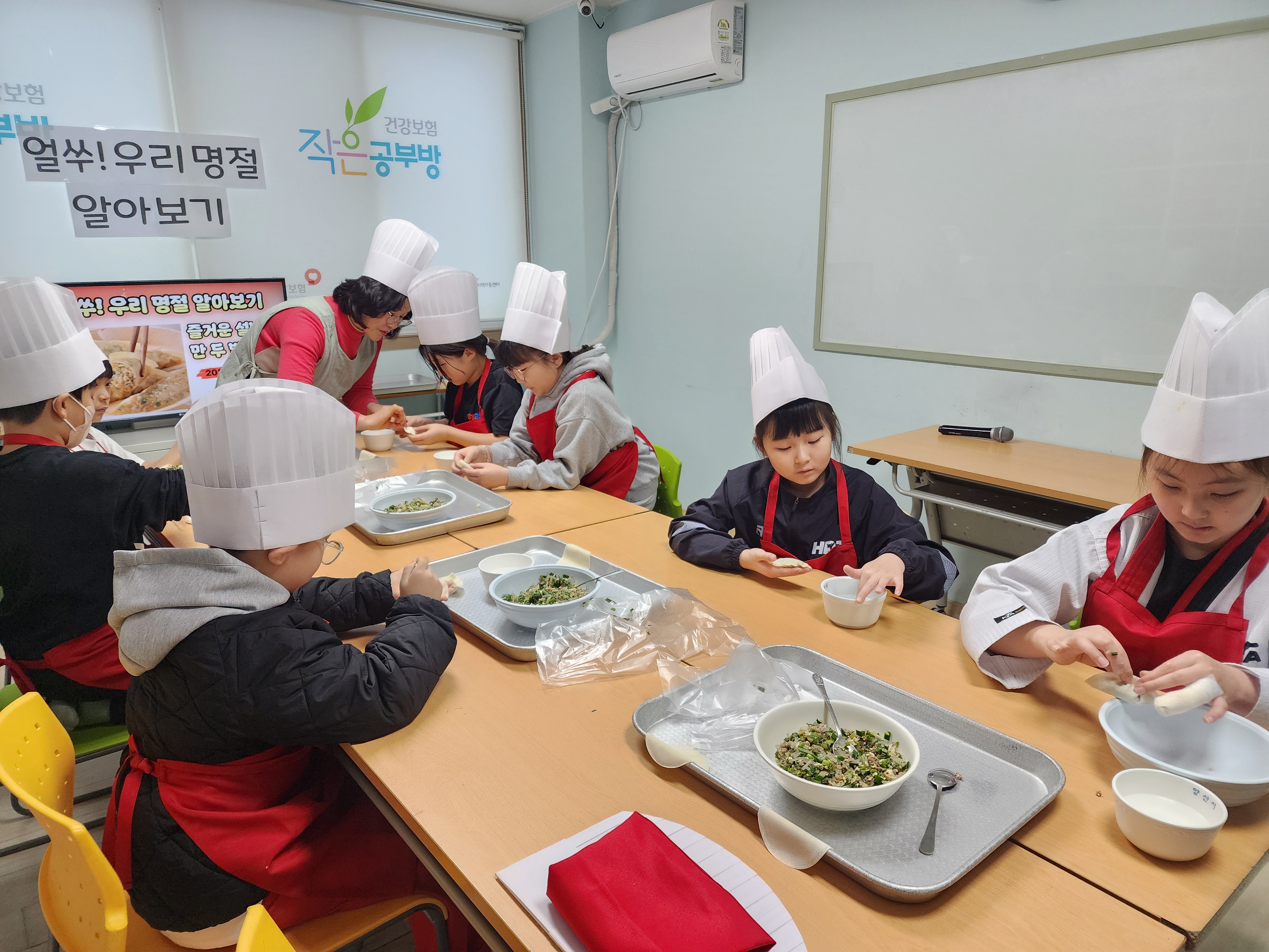 2026년 2월 13일(금), 설날을 앞두고 「얼쑤! 우리명절 알아보기」 프로그램으로 만두 빚기와 전통놀이 체험을 함께 진행하였습니다. 엄마쌤의 지도에 따라 만두 만드는 법을 차근차근 잘 따라 배우며, 각자 개성 있는 모양으로 만들며 즐겁게 참여하였습니다.
