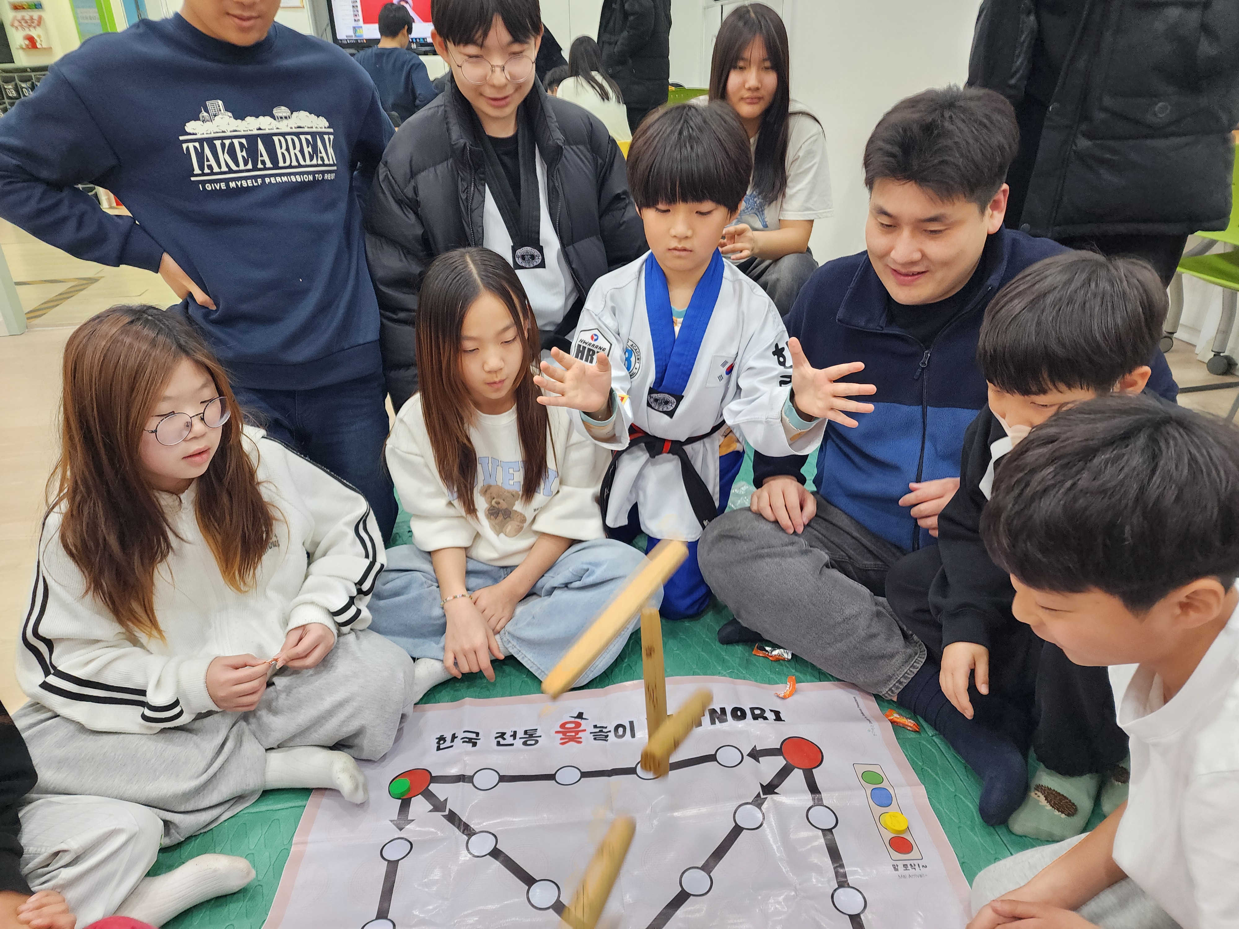 이어 투호던지기, 비석치기, 윷놀이 등 전통놀이를 자유롭게 체험하였으며, 마지막에는 팀별 아이스크림을 걸고 진행된 윷놀이에 아동들의 승부욕이 더해지며 윷놀이판의 열기가 대단했답니다^^ 맛있는 아이스크림도 먹고, 직접 빚은 만두도 맛있게 먹으며 즐거운 명절 분위기를 느낄 수 있는 하루였습니다. 2026년 새해에도 아동들이 항상 건강하고 밝은 모습으로 성장하길 바랍니다.