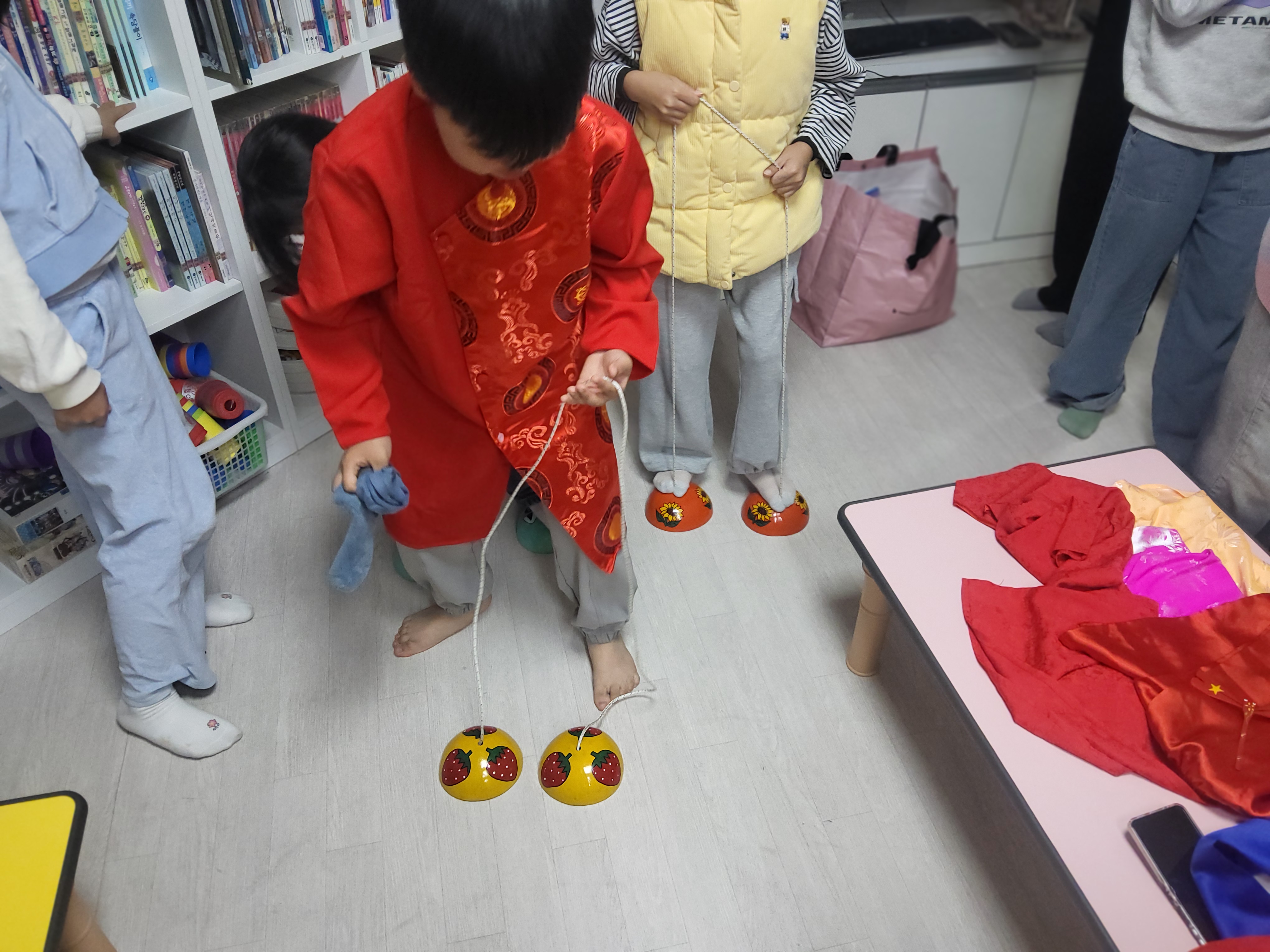 특히, 두 나라의 놀이 기구를 가지고 직접 해보는 다양한 게임 체험 활동 중, 베트남의 '쩐(Chuyền, 공기놀이와 유사)'이나 일본의 '다루마오토시'와 같은 전통 놀이 체험에서는, 아동들이 규칙을 배우고 게임에 참여하며 서로 성공을 격려하고 도움을 주고받는 협력적인 태도를 보였다. 아동들은 우리나라의 놀이와 비슷한 점을 찾아내며 문화적 동질감을 느끼고 함께 즐기는 놀이 공유의 모습을 나타냈다.