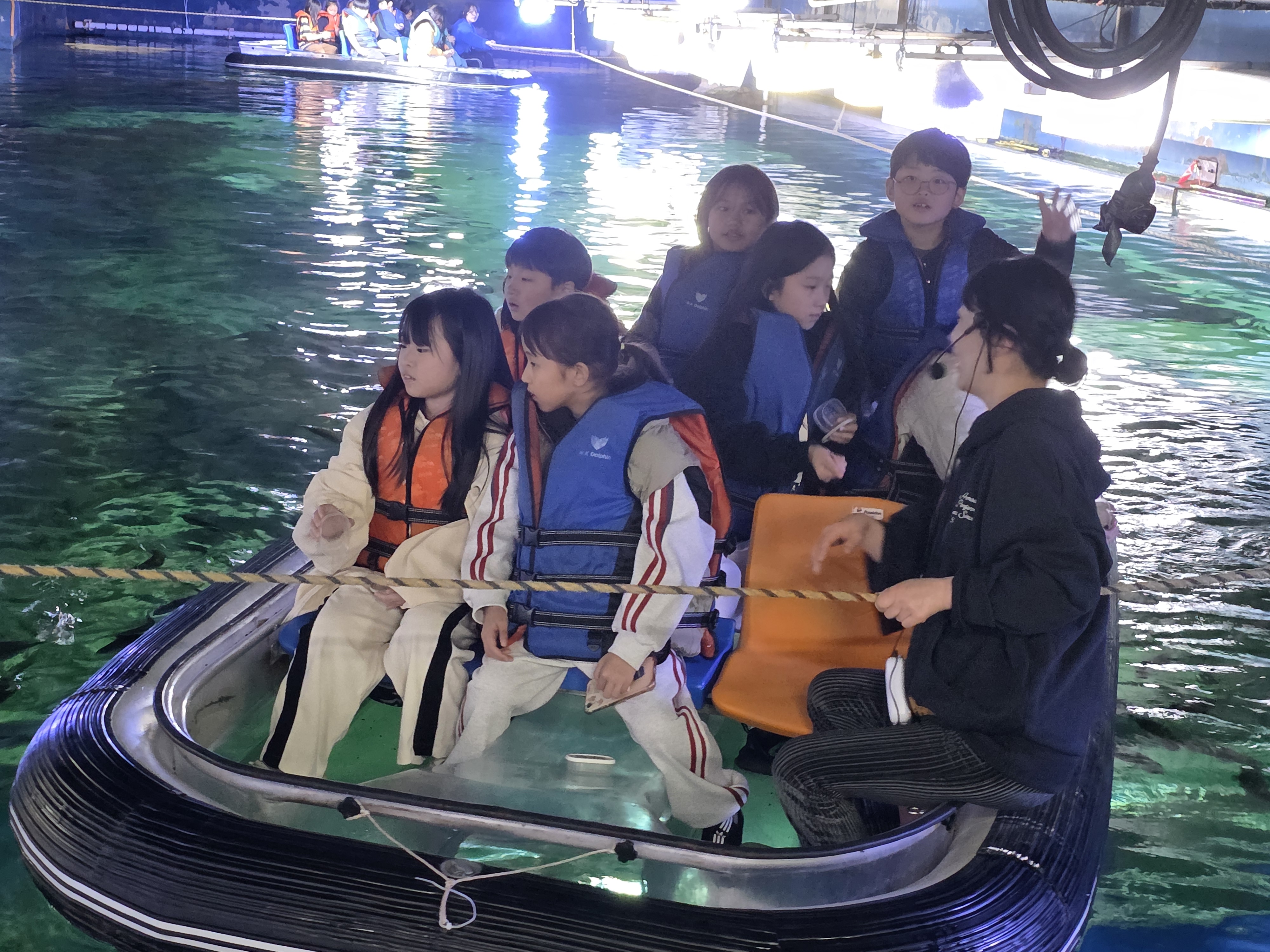 투명보트 체험 활동에서는 사전 안전수칙을 재안내한 후 순차적으로 체험을 진행하였다. 일부 아동은 처음에는 긴장하는 모습을 보였으나, 체험이 시작되자 “바로 밑에 물고기가 보여요!”, “정말 신기해요.”라며 즐거움을 표현하였다. 체험 전후 질서를 잘 지켰으며 안전하게 활동을 마무리하였다.