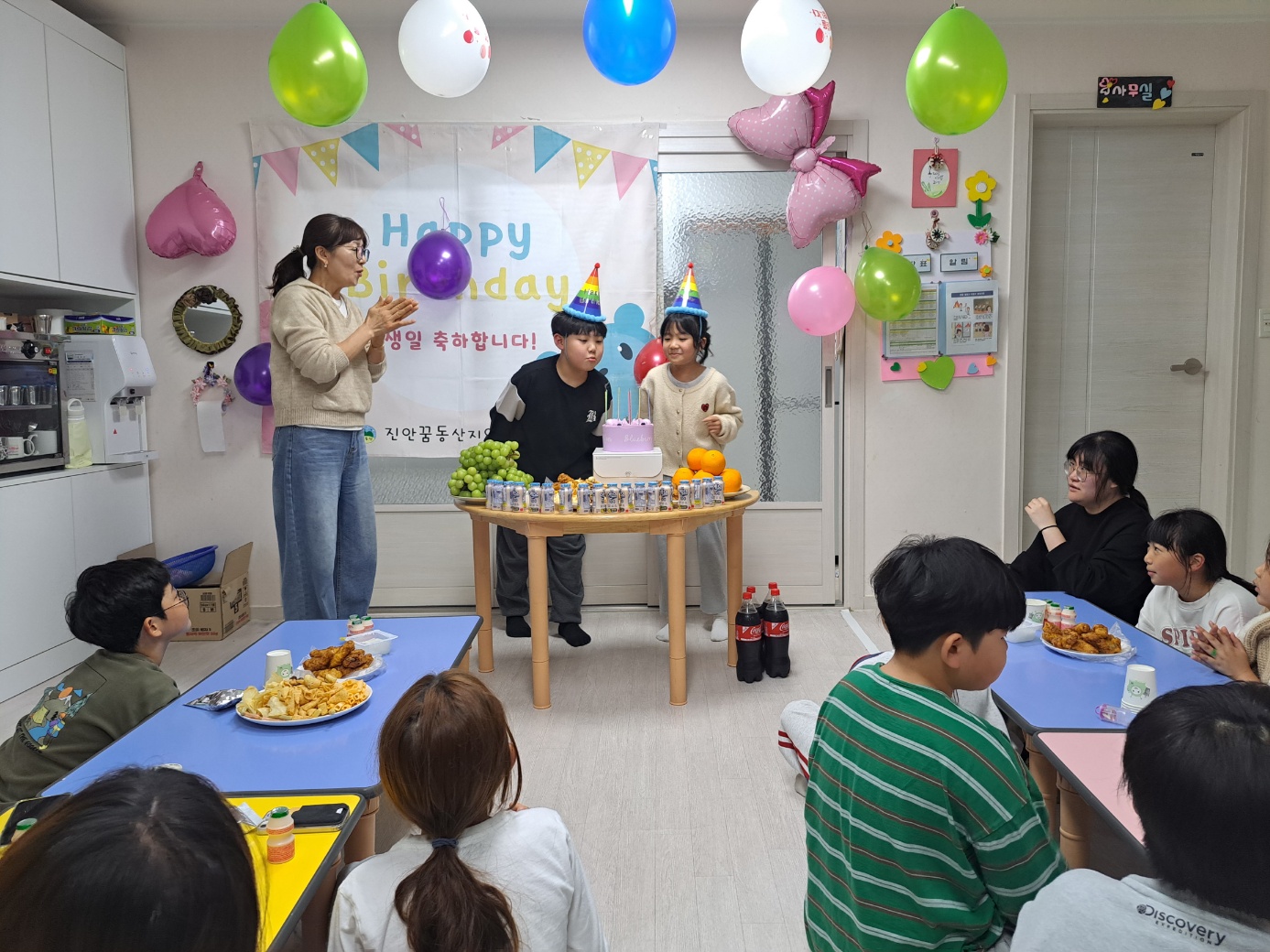 3월 2회기 생일잔치는 김*민, 김*빈 아동을 중심으로 또래와 함께 생일을 축하하며 긍정적인 정서와 공동체 의식을 함양하는 시간으로 진행되었다.