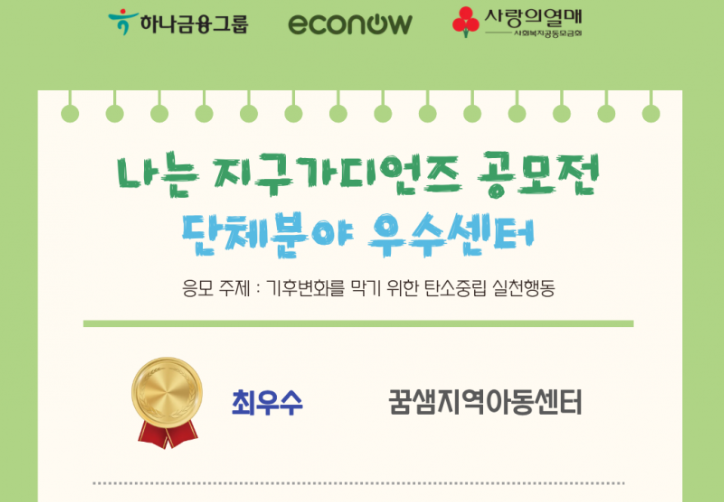 <나는 지구가디언즈> 공모전 단체전 최우수기관 선정