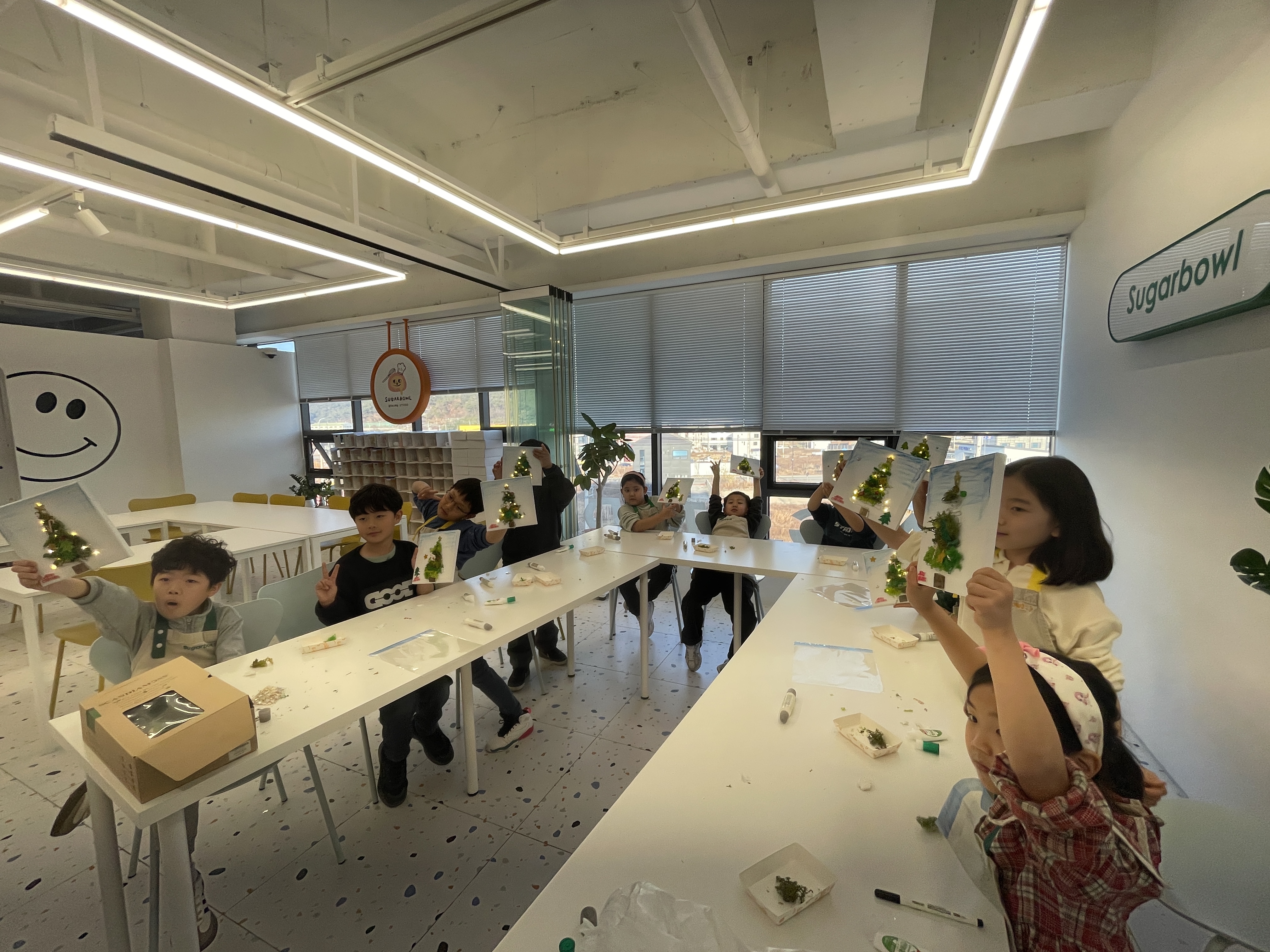 이어 진행된 활동은 크리스마스트리 모양의 모스 액자 제작으로, 자연 소재를 활용한 예술 활동을 통해 아동들이 심리적 안정감을 느끼고 계절의 의미를 감각적으로 이해할 수 있도록 하였습니다. 아동들은 색감과 배치를 고민하며 창의적으로 작품을 완성하였고, 완성된 액자는 크리스마스의 따뜻한 분위기를 한층 더해주었습니다.