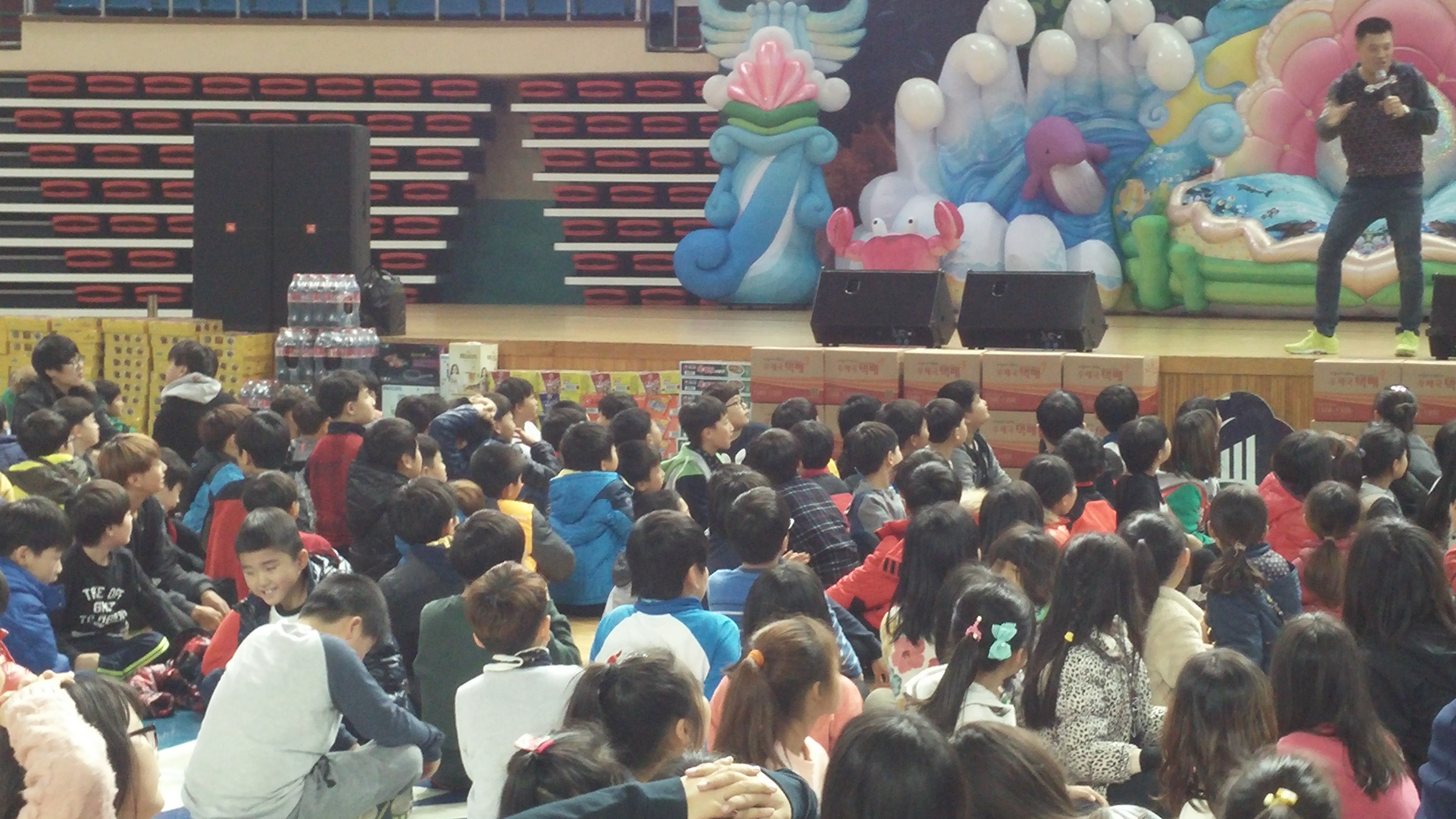 한마당 체육대회때 사회자 선생님이 재미있는 분이셔서 아동들의 혼을 쏙 빼놓을 정도로 즐거웠던 시간이었습니다