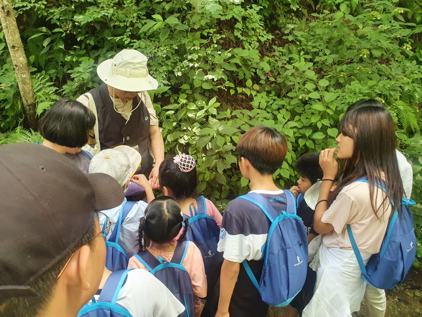 지원받아 진행하는 나눔의 숲 캠프(김천 치유의 숲)에 참여하였습니다. 참여 아동은 숲 해설