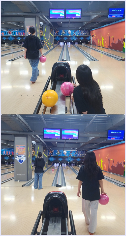 볼링장에서는 팀을 나누어 3번의 게임을 해보았는데 한 게임마다 돌아가며 팀을 이루었습니다.