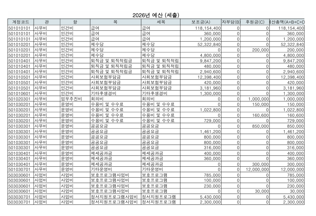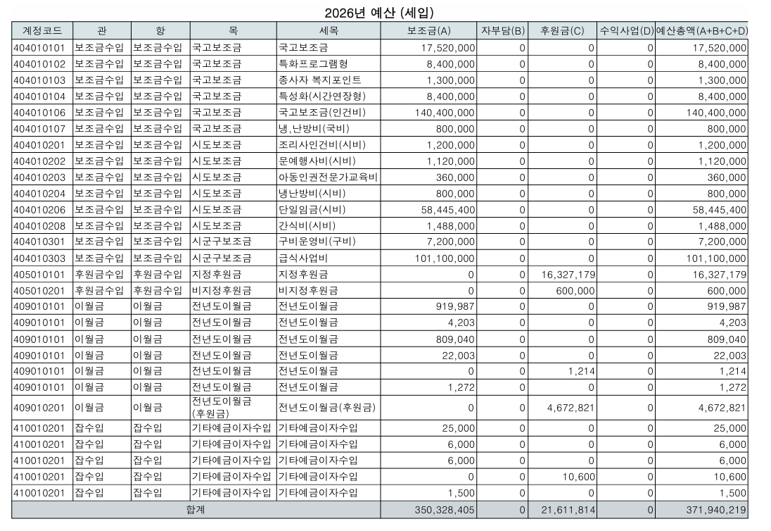 □ 공고내용 : 2026년 사업계획서 , 예산 세입 및 세출