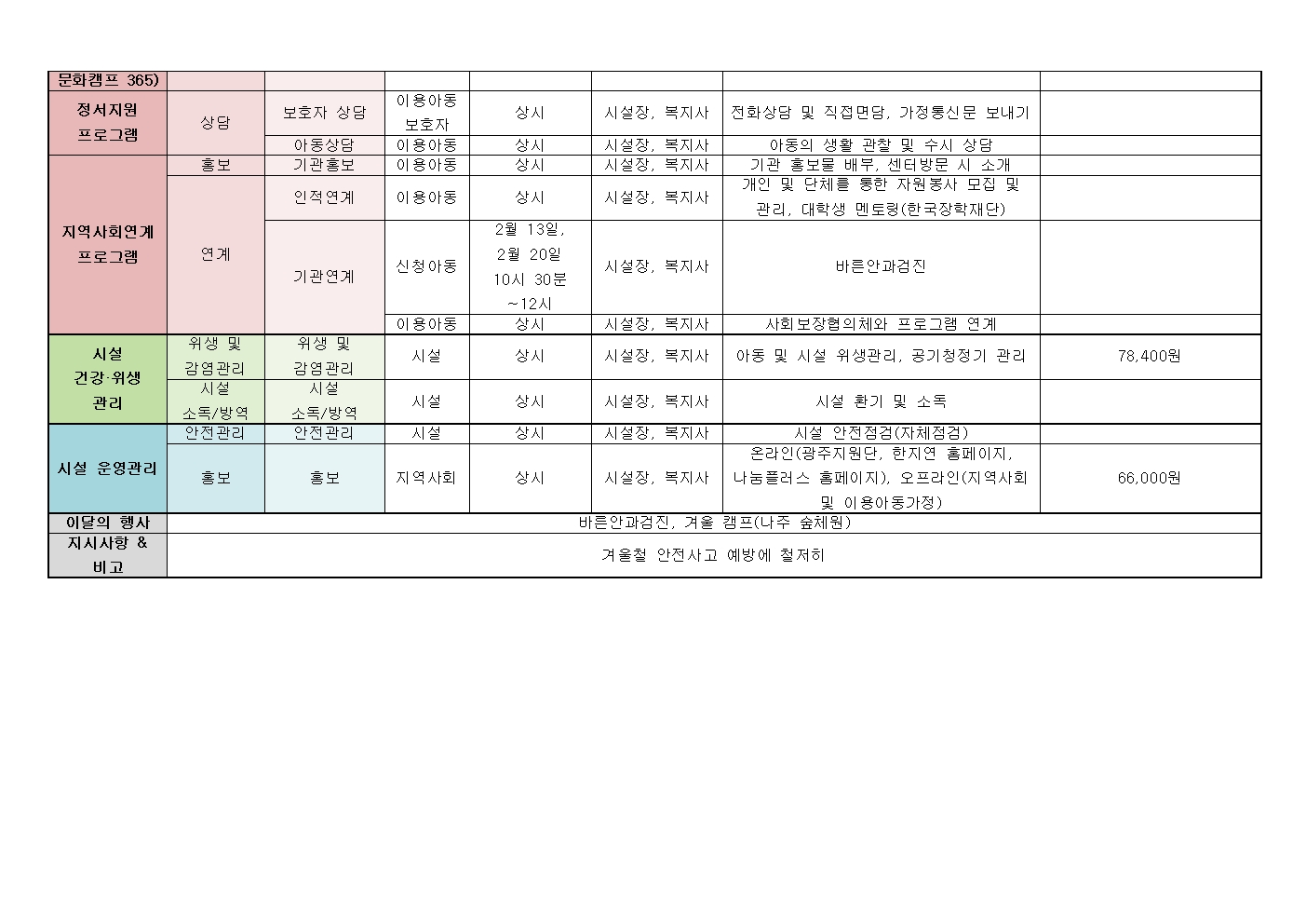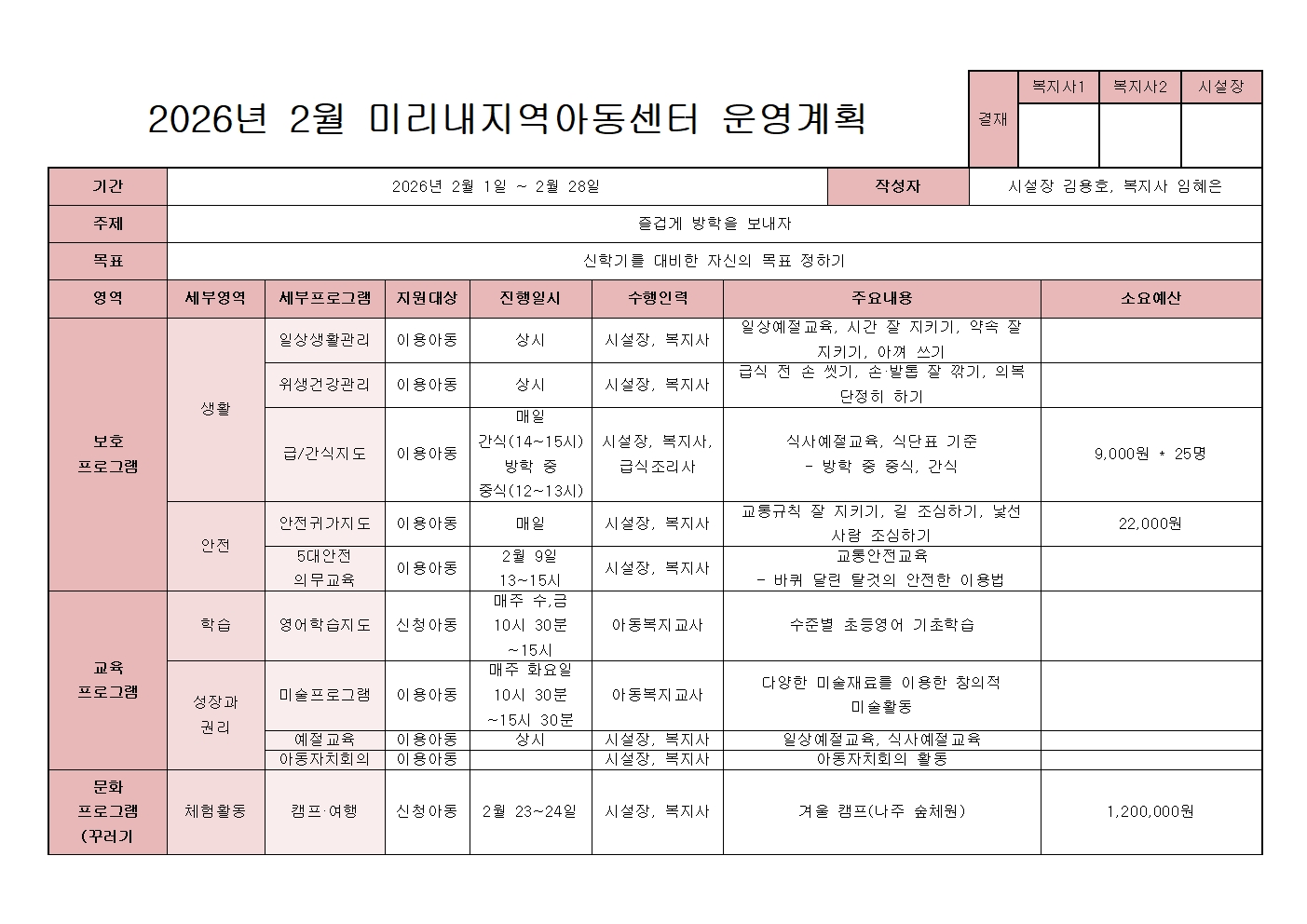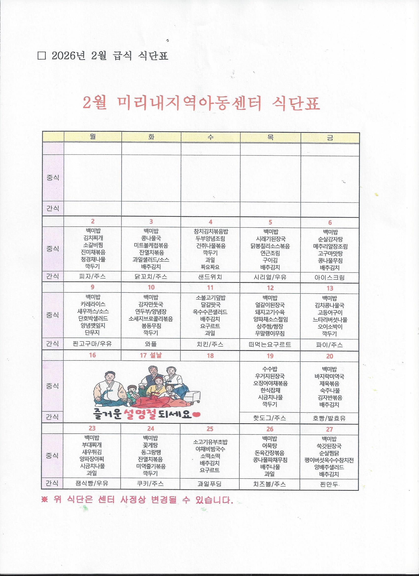 2026년 2월 월간계획표 & 2월 식단표