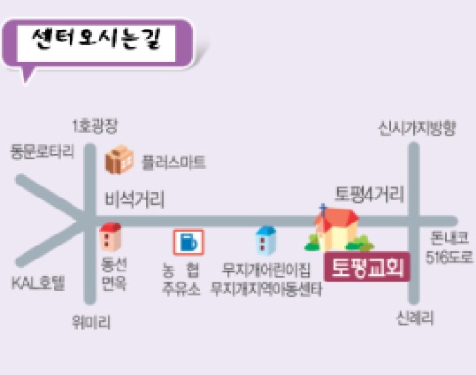 무지개지역아동센터 | 제주 서귀포시 516로 94 토평교회 내(토평동) [지도보기] Tel : 064-732-1361 Fax : 064-732-1362 E-mail : moojg.1361@daum.net