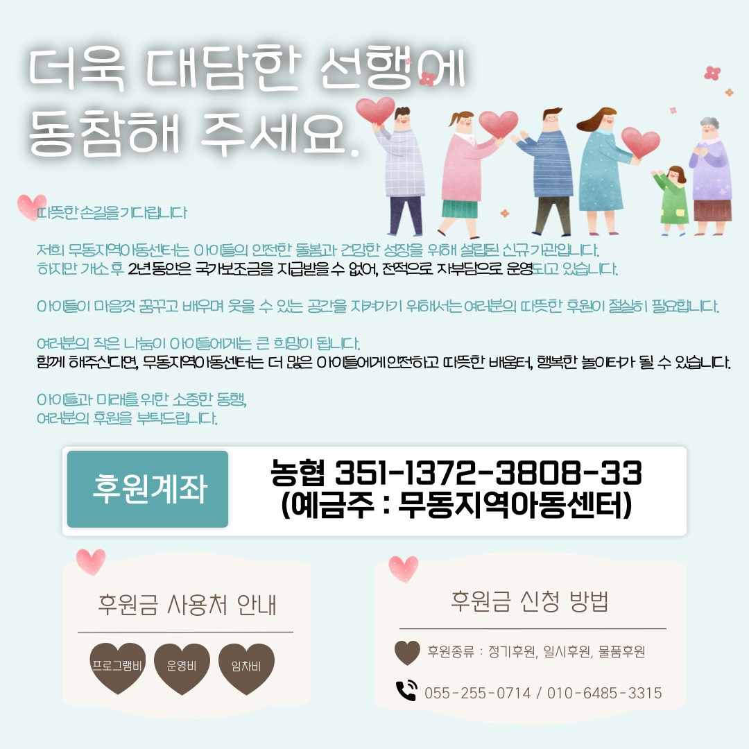 제목 : 무동지역아동센터는 후원자님이 꼭 필요합니다!