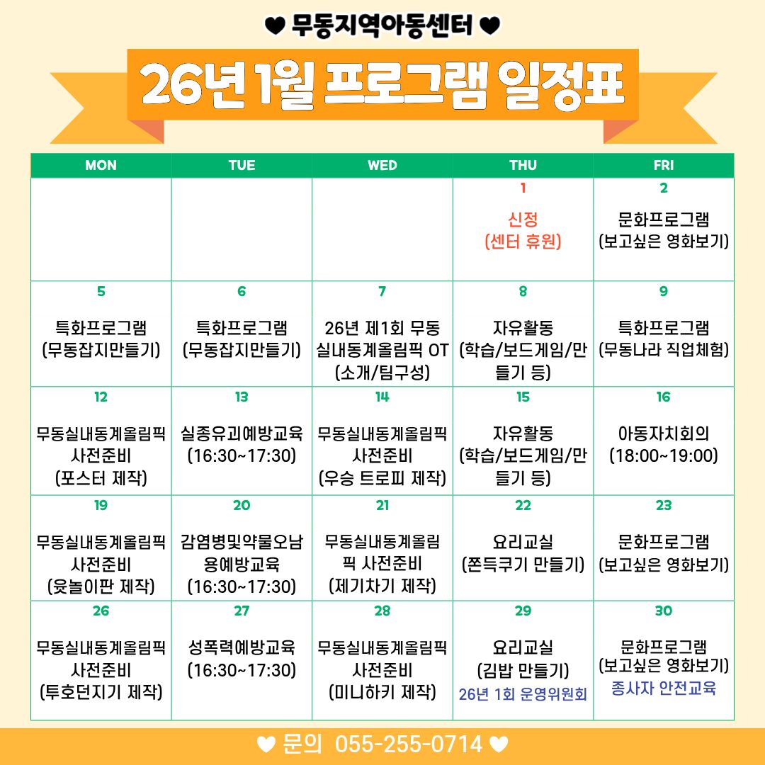 2026년 1월 프로그램 일정표