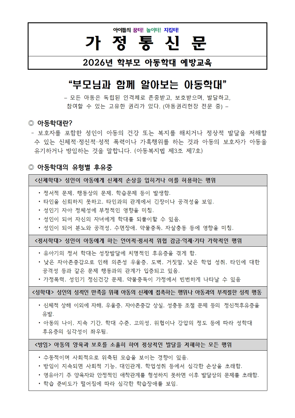 2월 가정통신문(부모님과 함께 알아보는 아동학대)