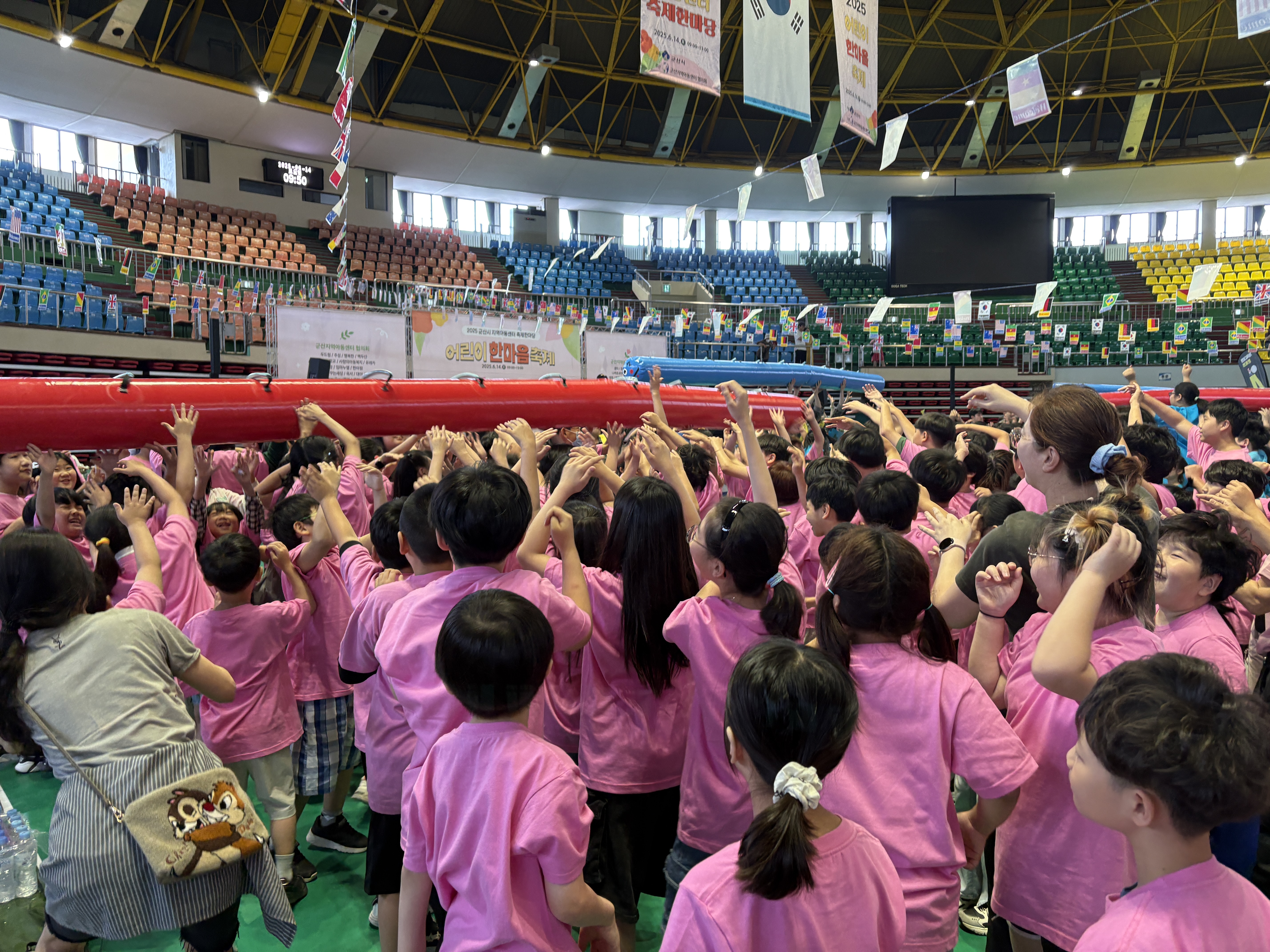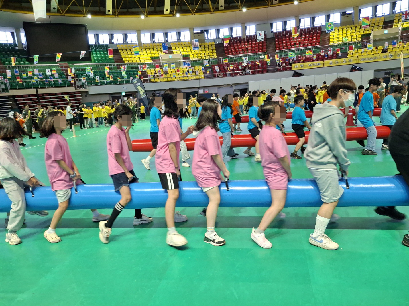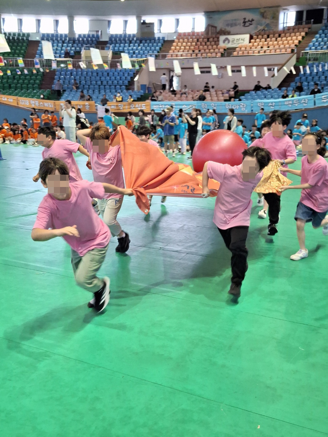 군산지역아동센터 아동들과 선생님들 모두 모여 신나게 게임하며 친목 도모하는 시간이었다.