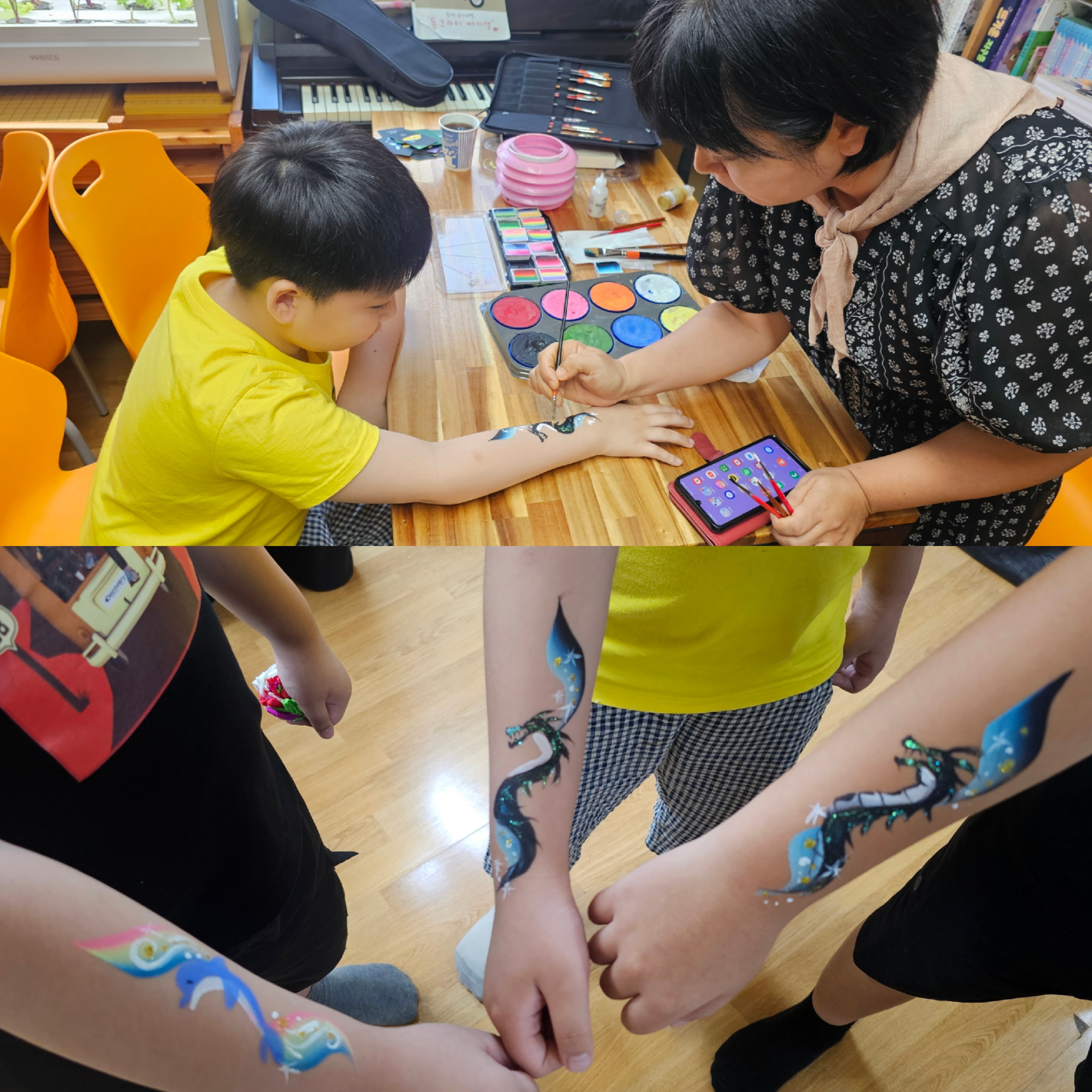 그림책테라피 → 마술쇼,페이스페인팅,동화구연→ 삼겹살 파티 → 장기자랑 → 단체게임 → 영화관람 → 삼계탕 까지!