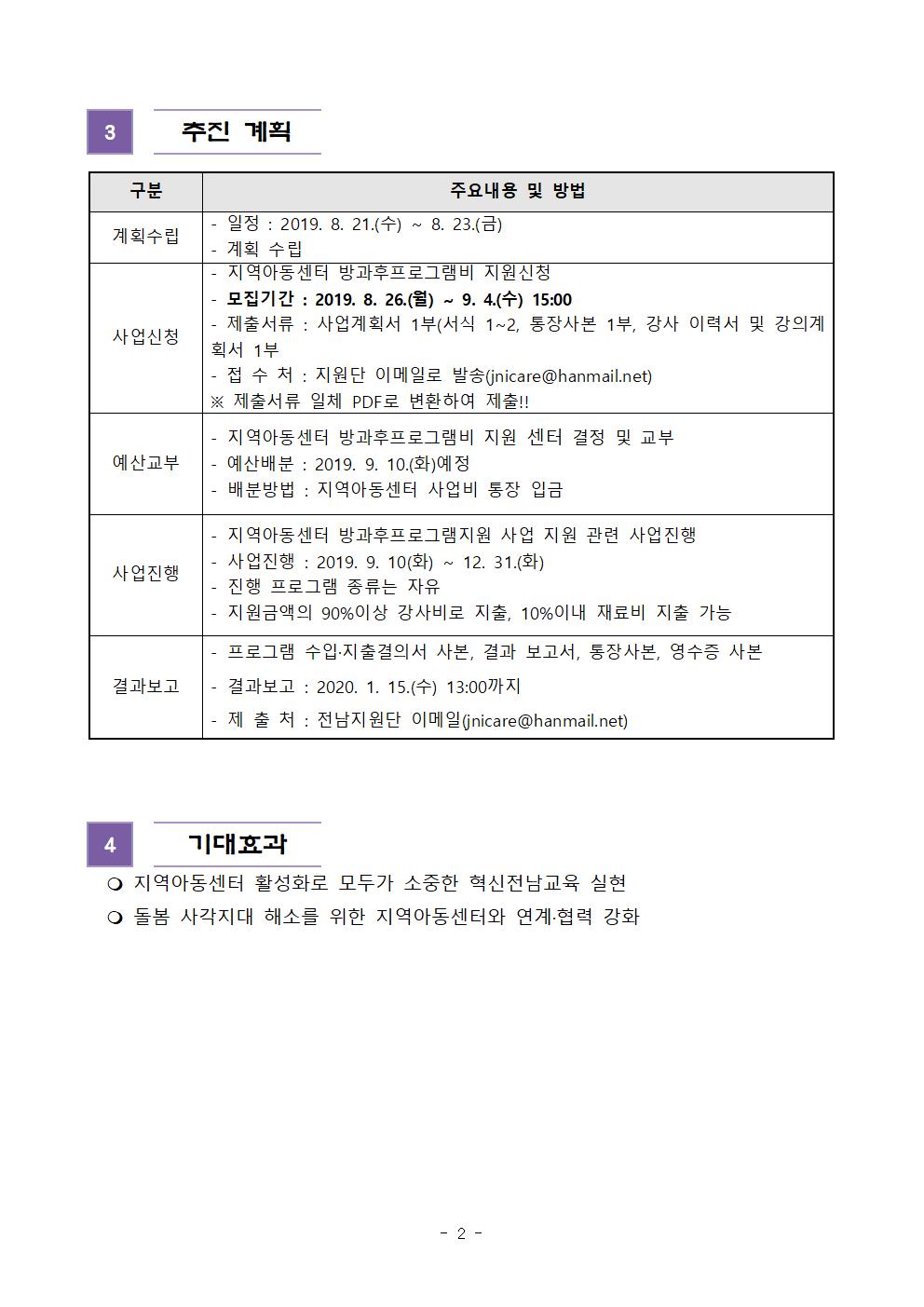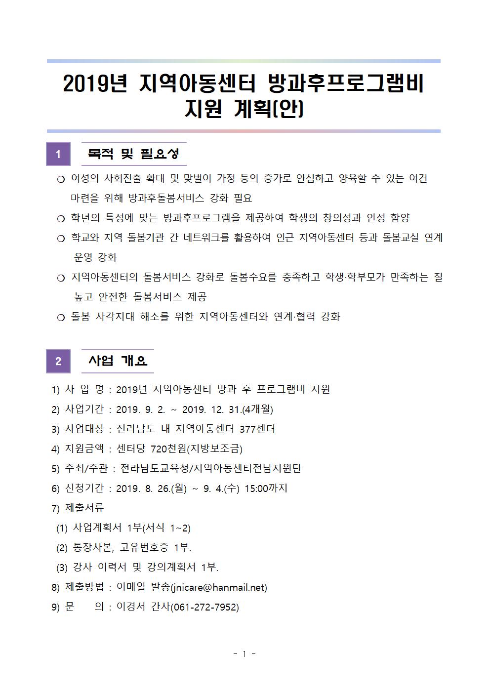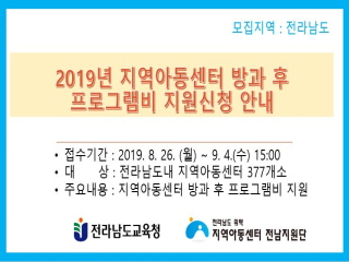 2019년 지역아동센터 방과후 프로그램비 지원 신청 안내