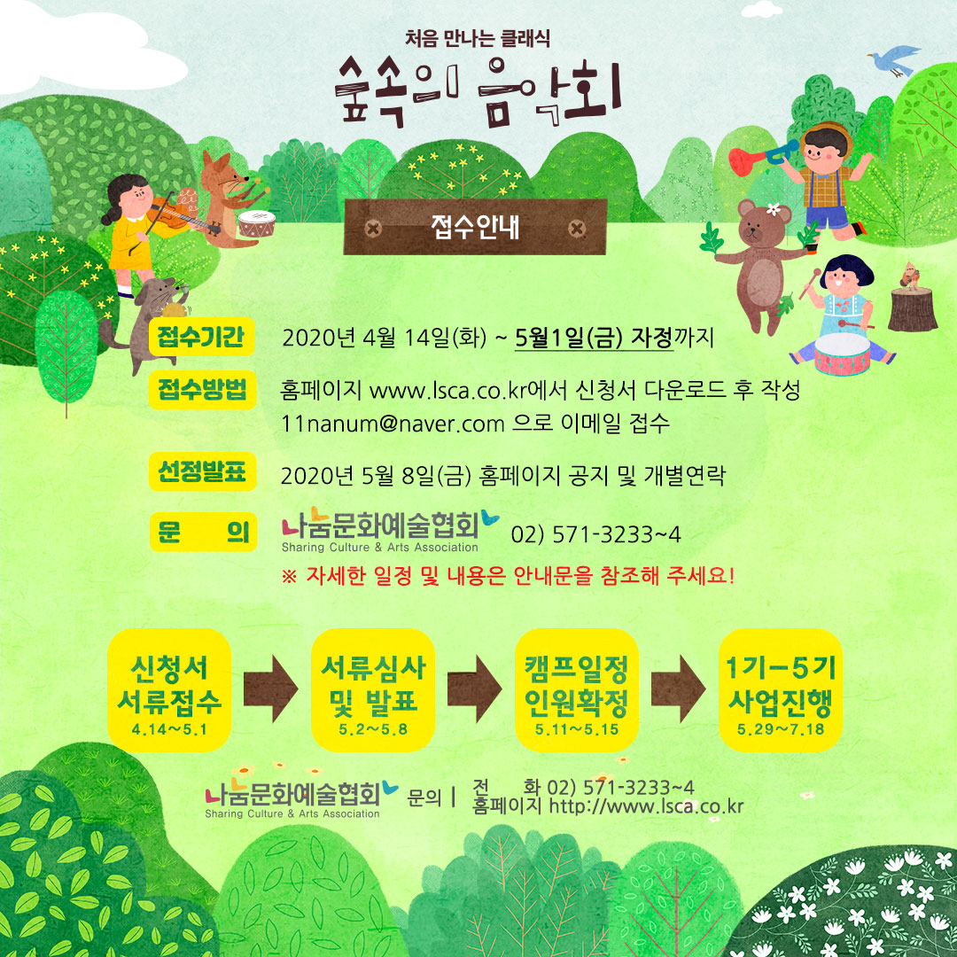 처음 만나는 클래식 '숲속의 음악회' - 1차 참가모집 안내 (서울 서부/북부/중부 지역)