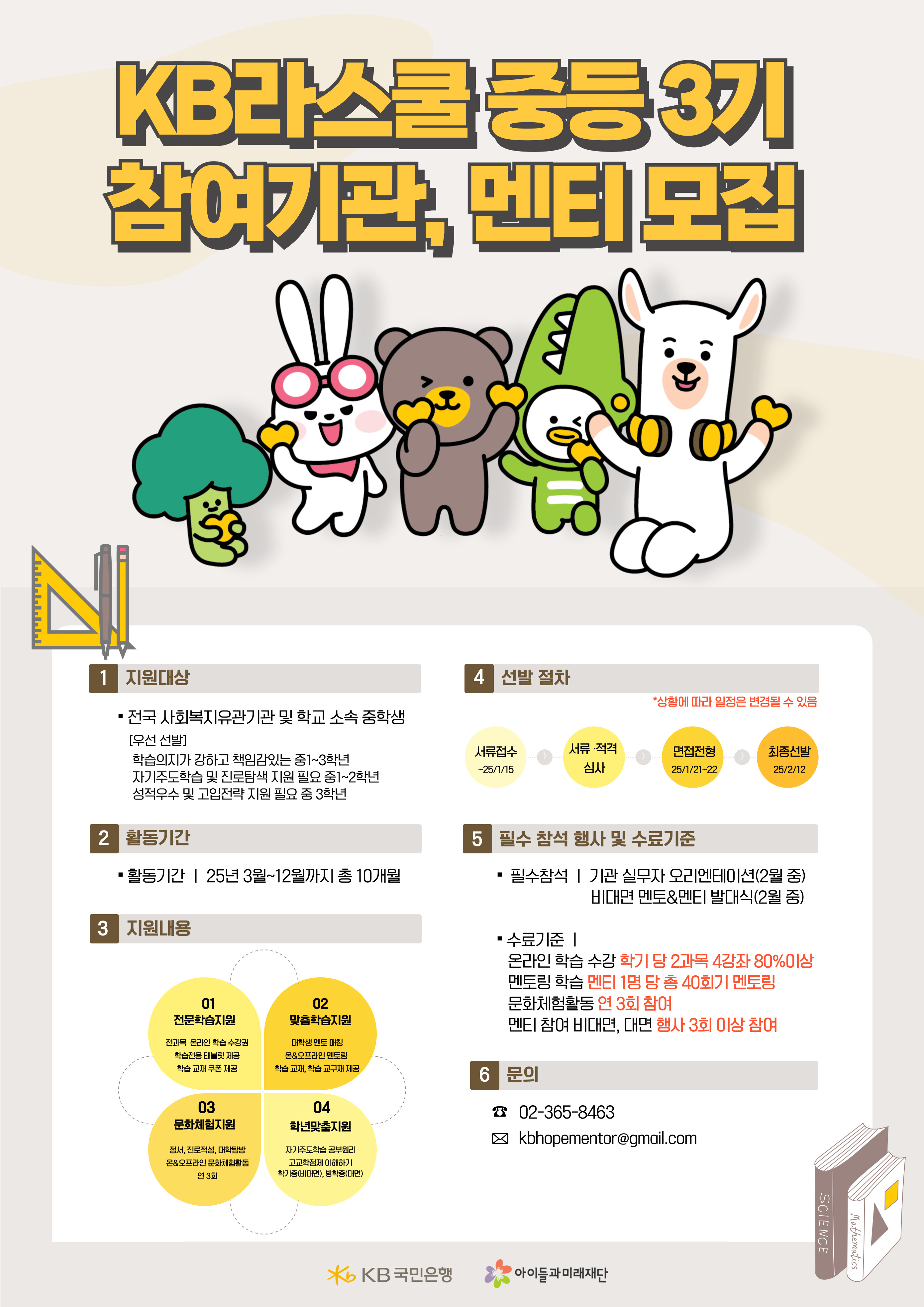 [모집] 2025 KB Dream Wave2030 KB라스쿨(중등) 3기 참여기관,멘티 모집(~1/15까지)