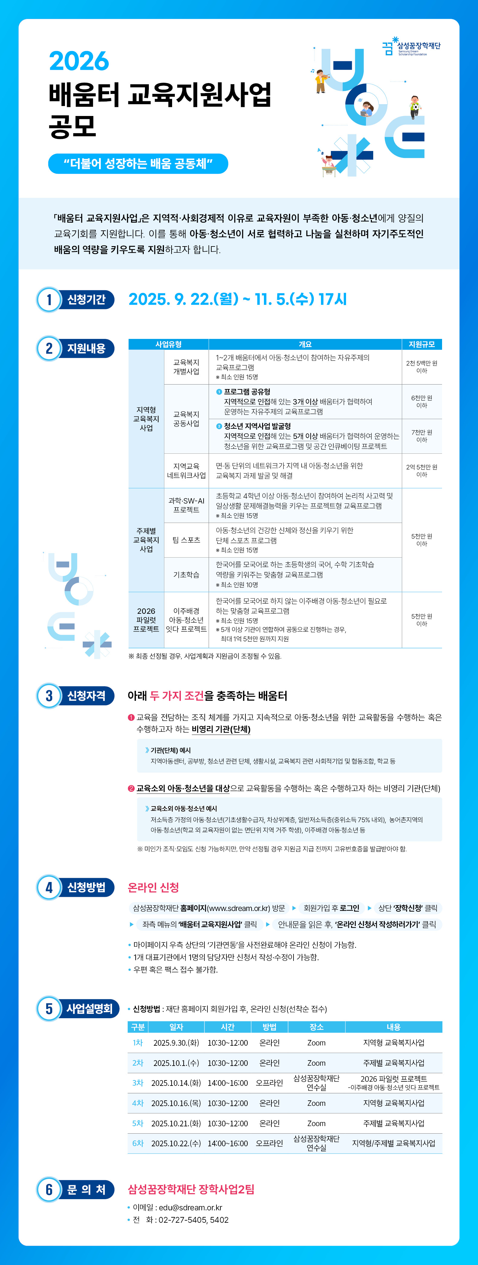 삼성꿈장학재단 2026년 배움터 교육지원사업 공모