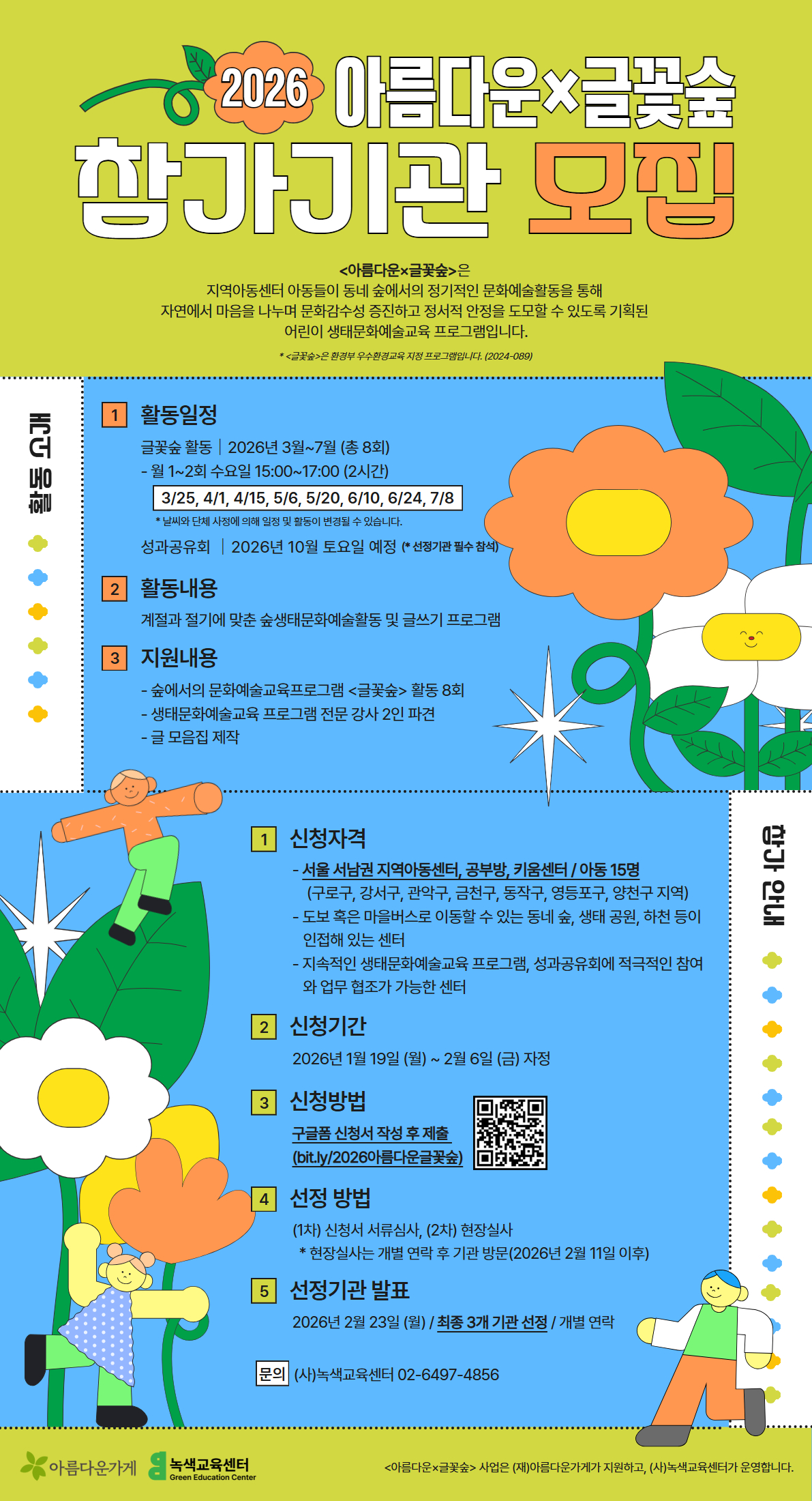 지역아동센터 아동과 함께하는 <아름다운×글꽃숲> 참가기관을 모집합니다.