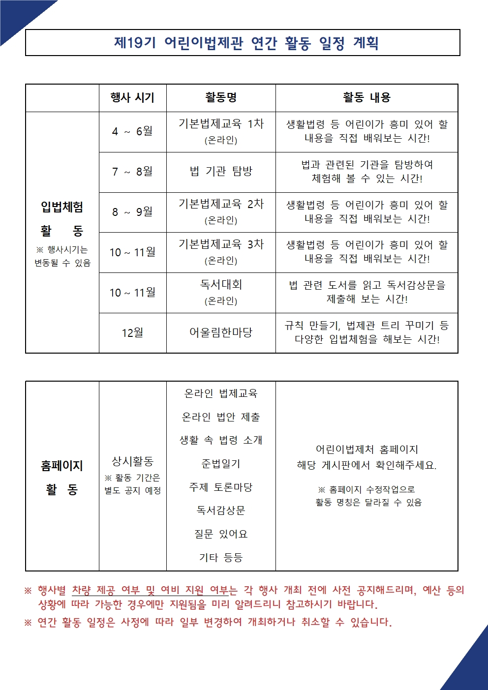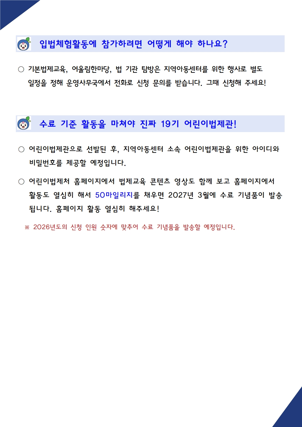 2026년 제19기 지역아동센터 어린이법제관 모집 안내