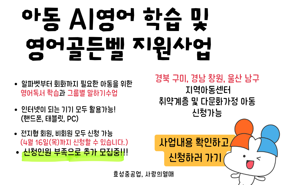 2026 아동 AI 영어학습 및 영어골든벨 지원사업 모집 안내