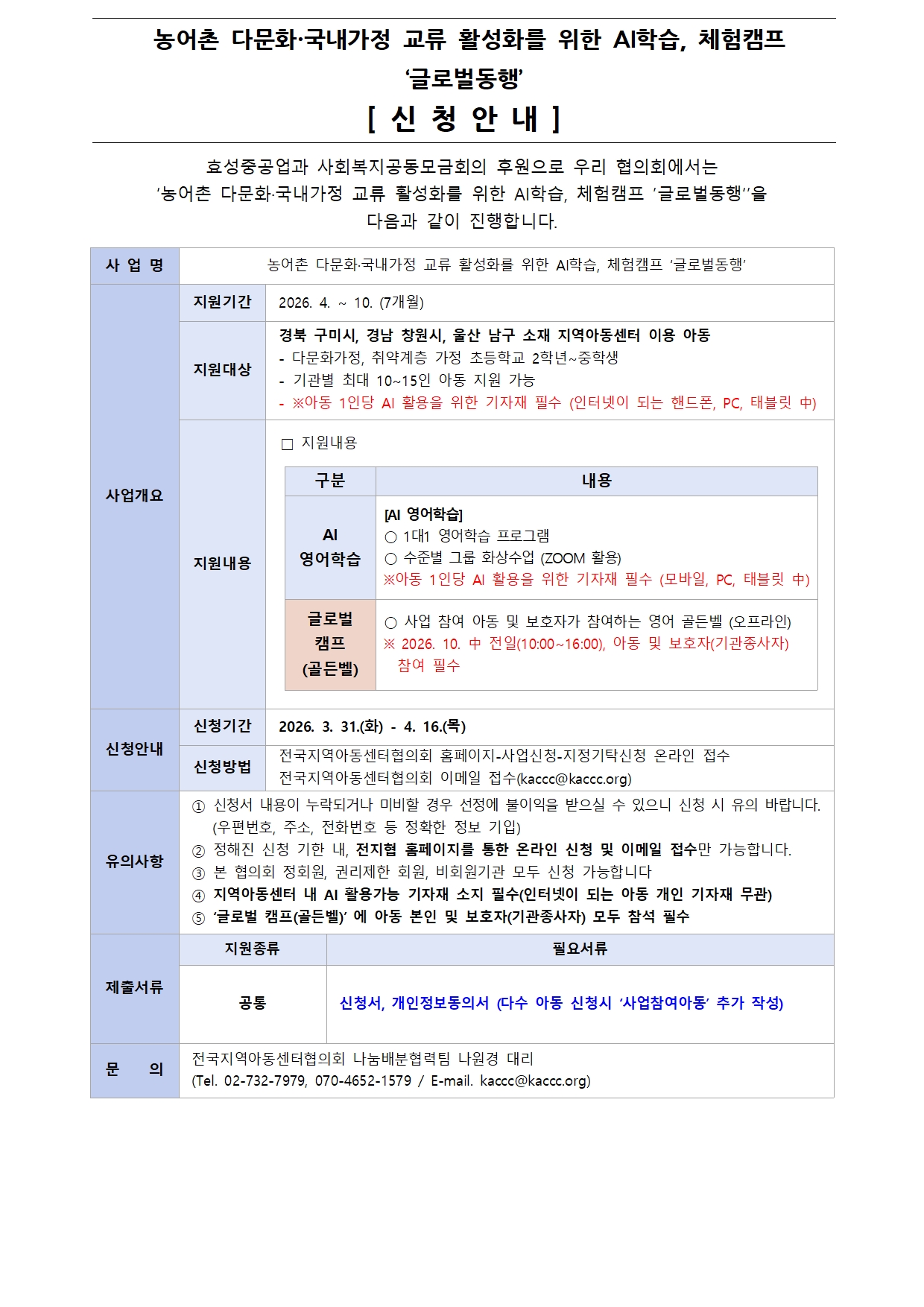 *첨부된 사업신청서 작성 후 이메일 제출(kaccc@kaccc.org)