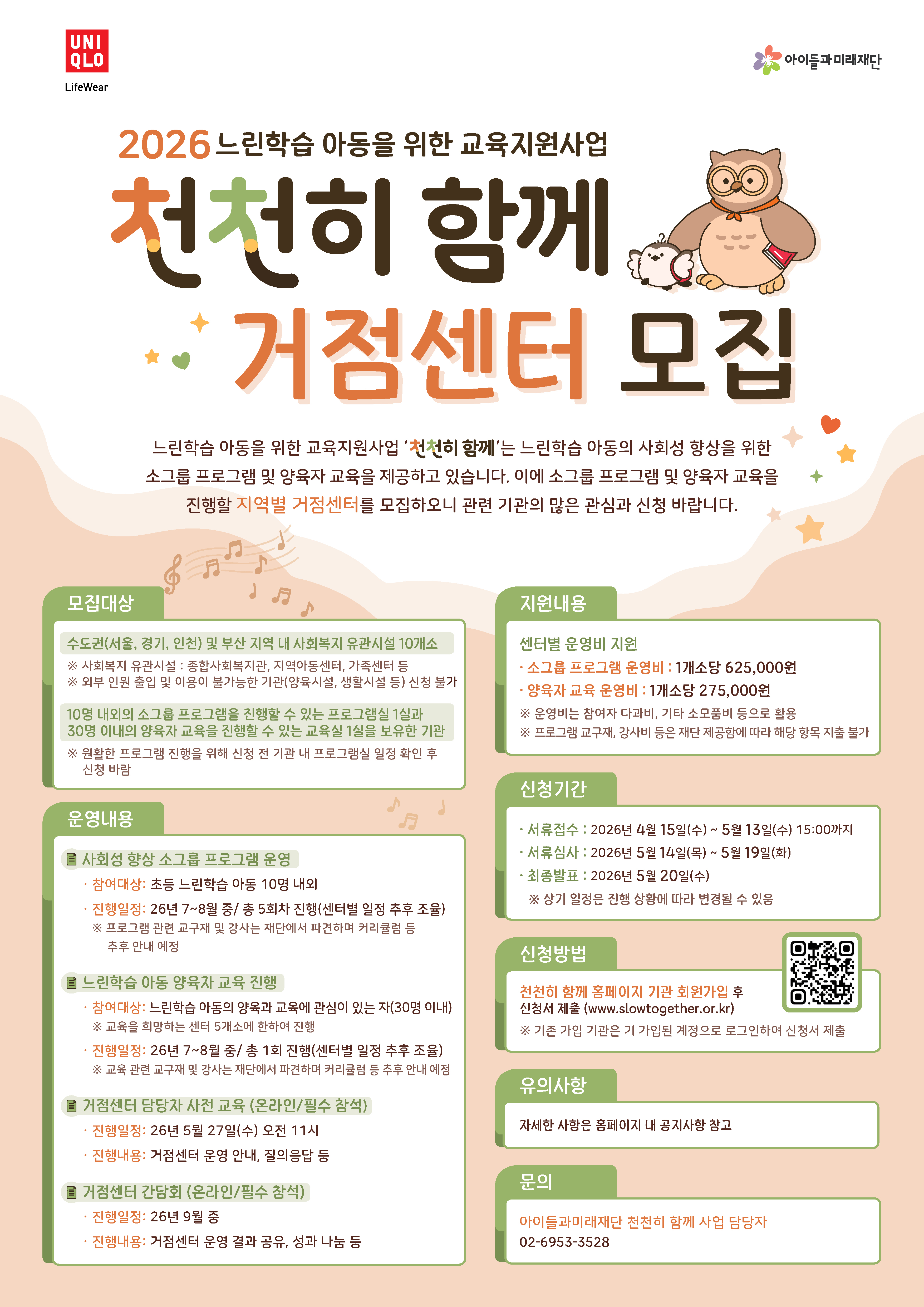 [프로그램] 아이들과미래재단 - 2026 느린학습 아동 교육지원 사업 '천천히 함께' 거점센터 모집