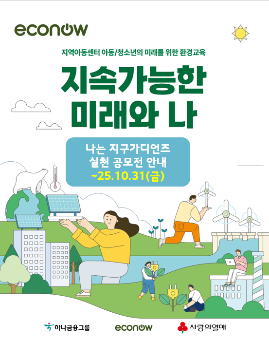 [하나금융 지속가능한 미래와 나] 나는 지구가디언즈 공모전 참여자 모집 안내 2005-10-02 09:00 ~ 2025-10-31 23:59나눔홍보
