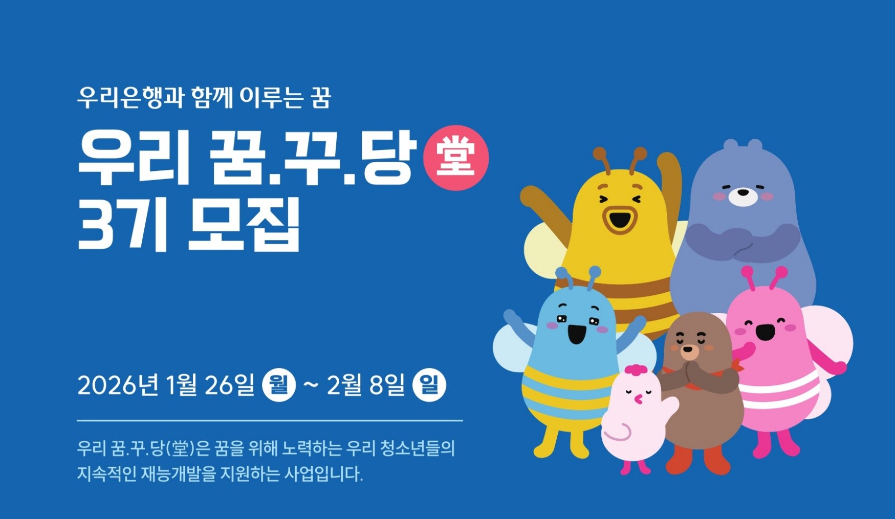 <2026년 우리은행 재능 청소년 미래지원사업 2026-01-26 15:00 ~ 2026-02-08 23:59나눔홍보
