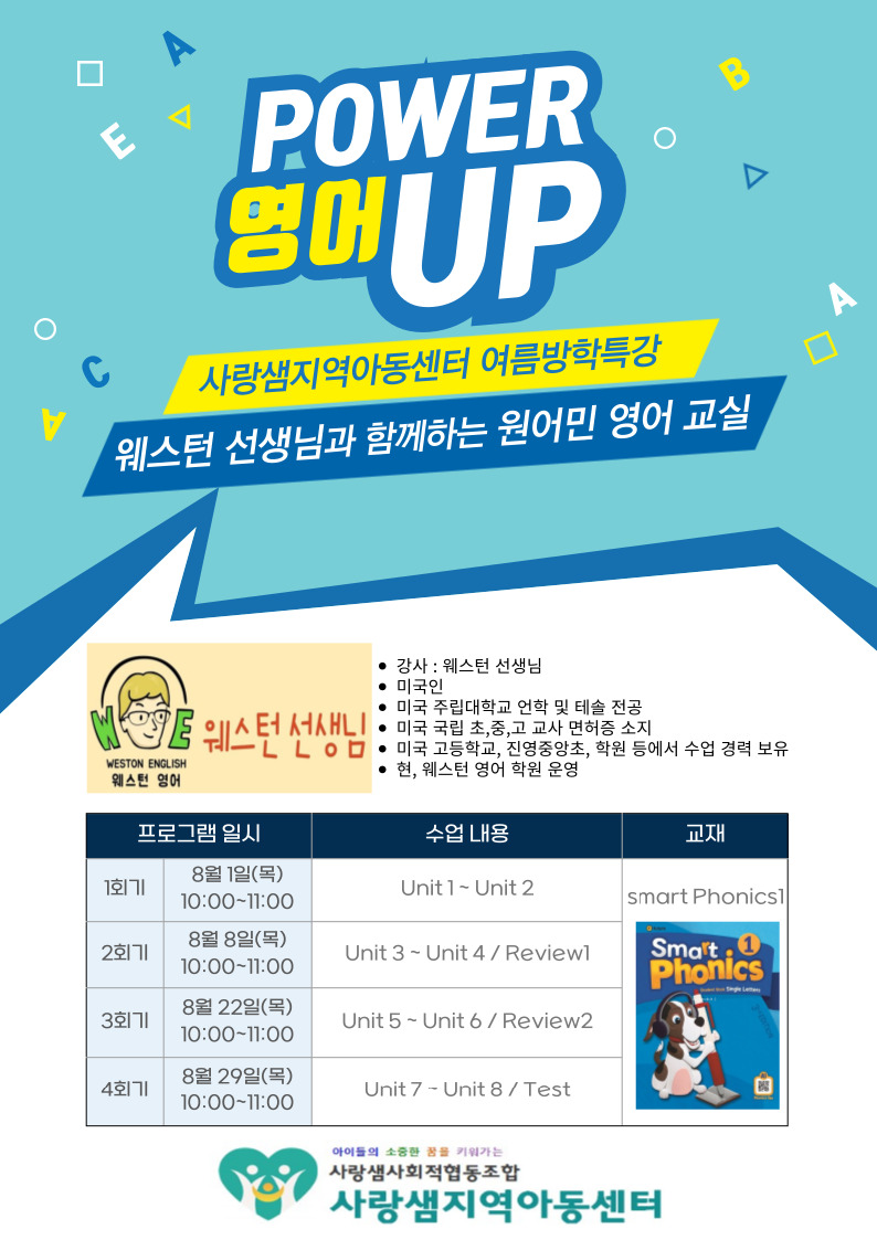 사랑샘지역아동센터 여름방학특강 "원어민 영어 교실"