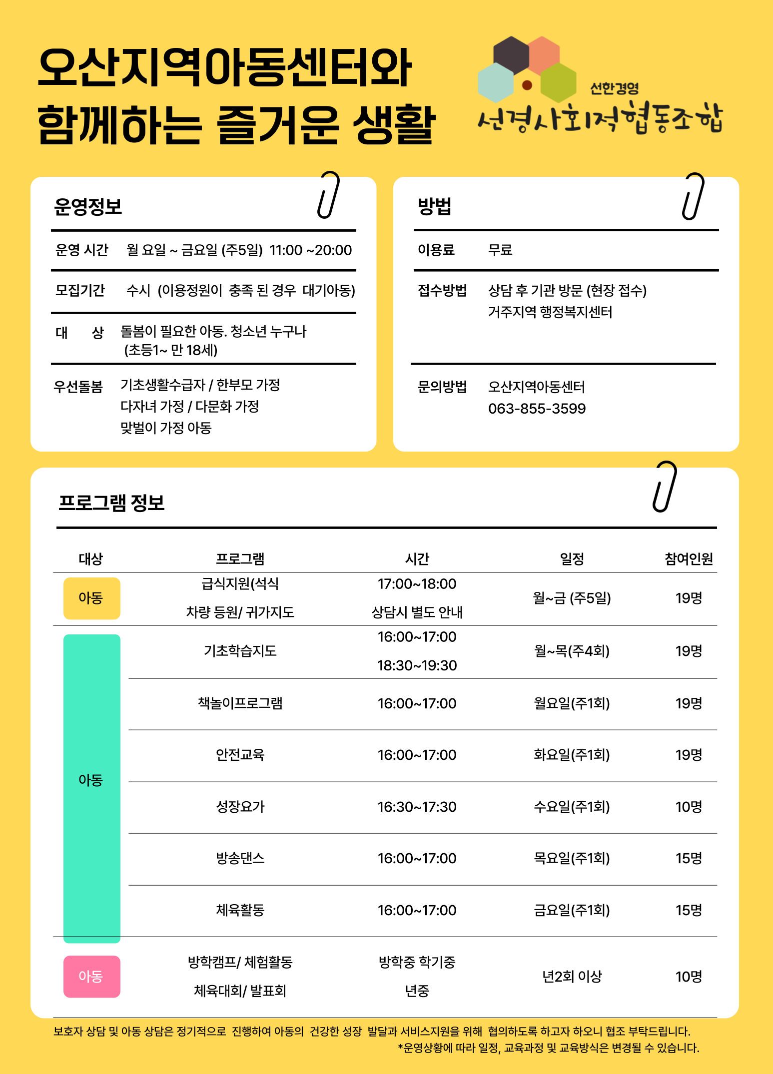 오산지역아동센터 | 전라북도 익산시 오산면 평동로 311 [지도보기] Tel : 063-855-3599 Fax : 063-855-3590 E-mail : rhkr1203@naver.com