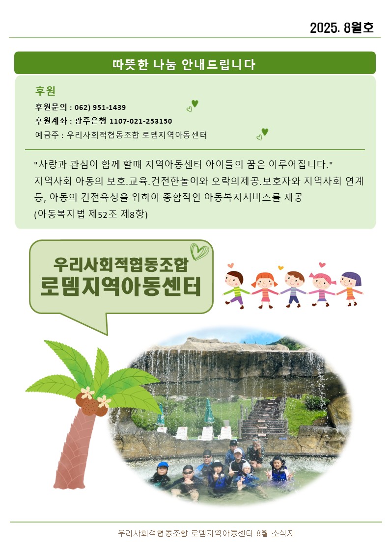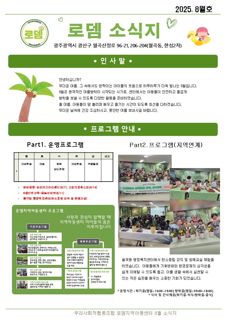 로뎀지역아동센터 8월 소식지