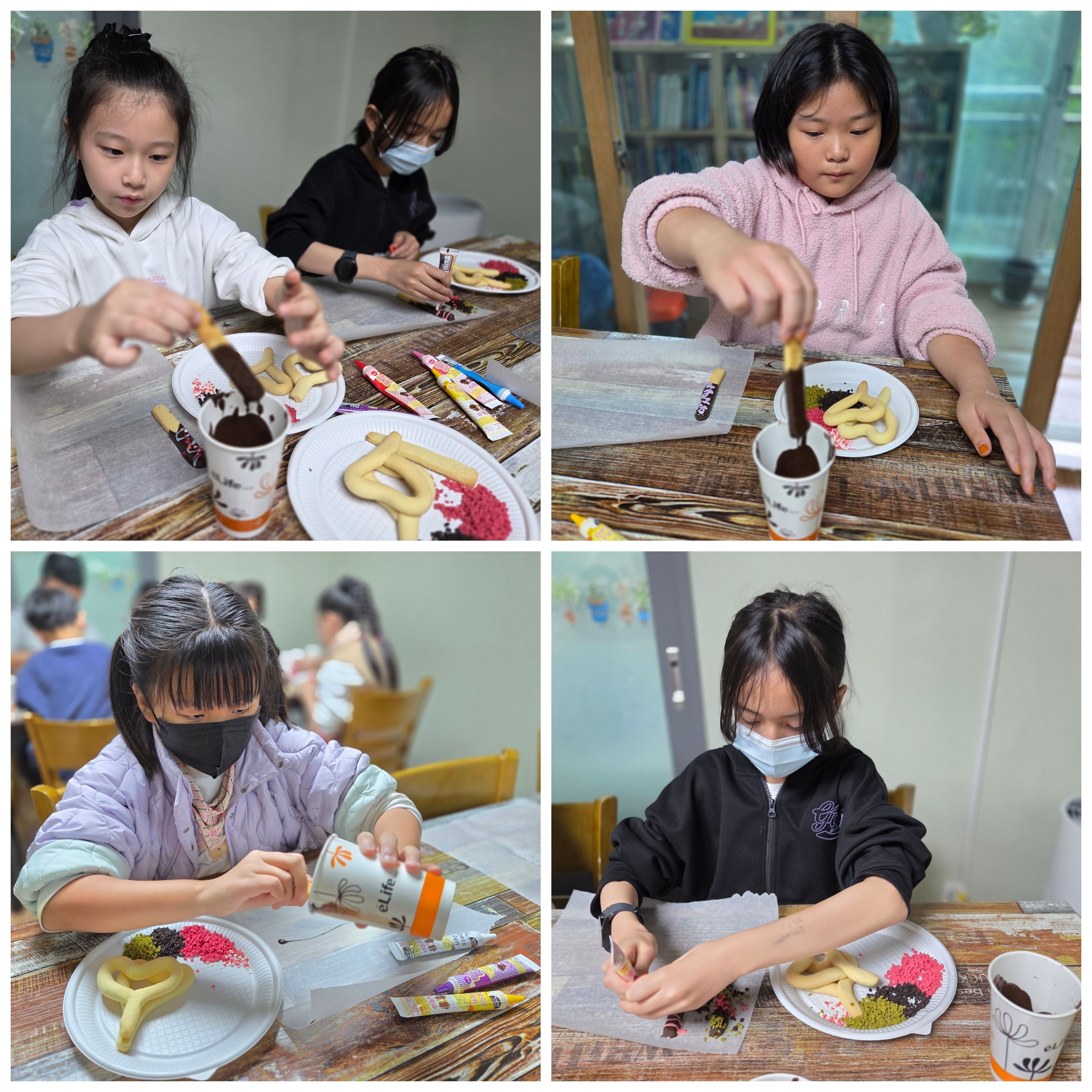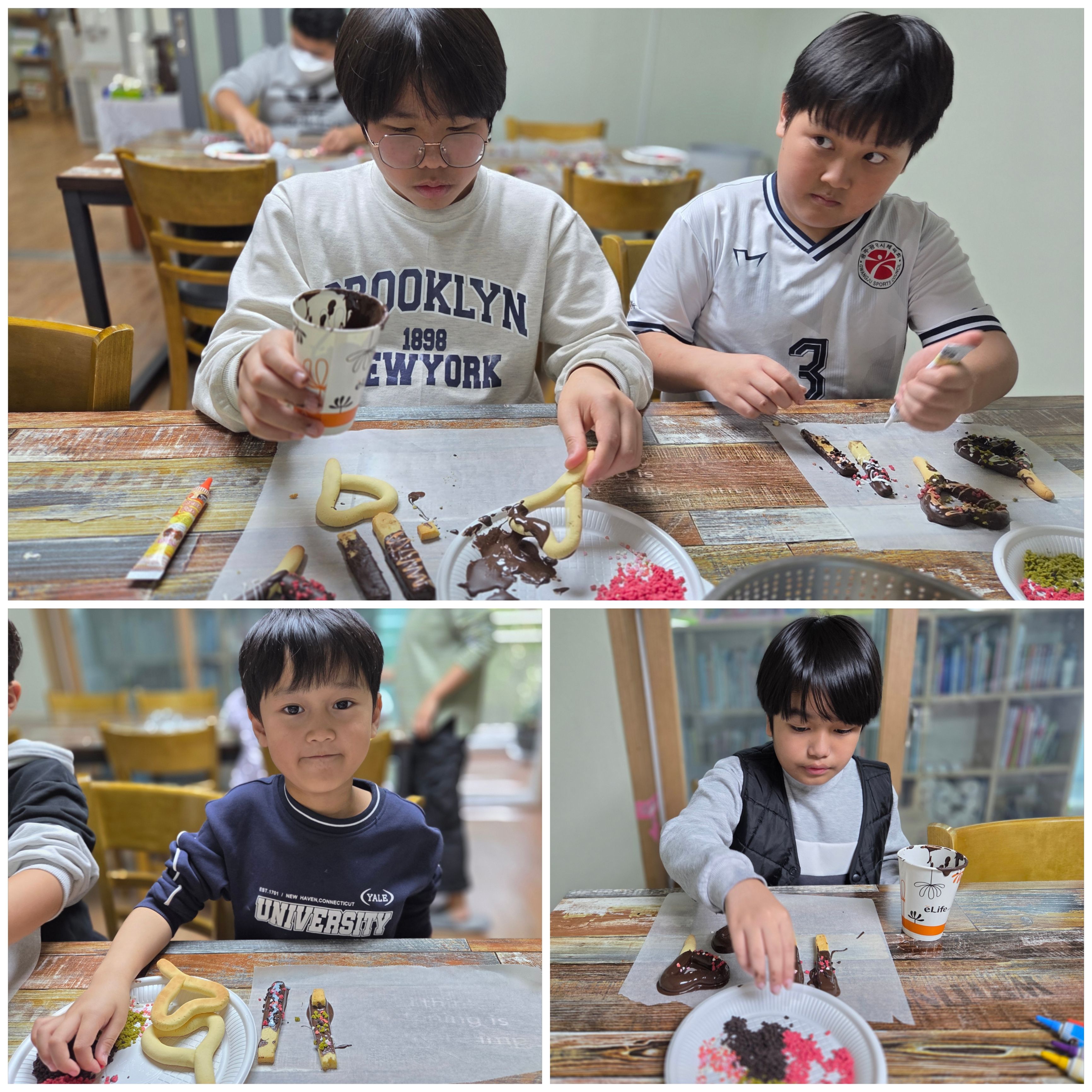 아동들과 '빼빼로 만들기' 요리활동을 하였습니다. ^^