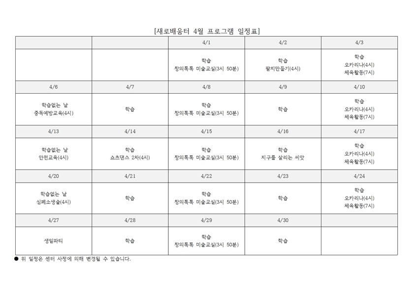 새로배움터지역아동센터 | 경상북도 구미시 문장로12길 21-4 도량동 2층 [지도보기] Tel : 054-442-1337 Fax : 054-441-1337 E-mail : saerobaeum@hanmail.net