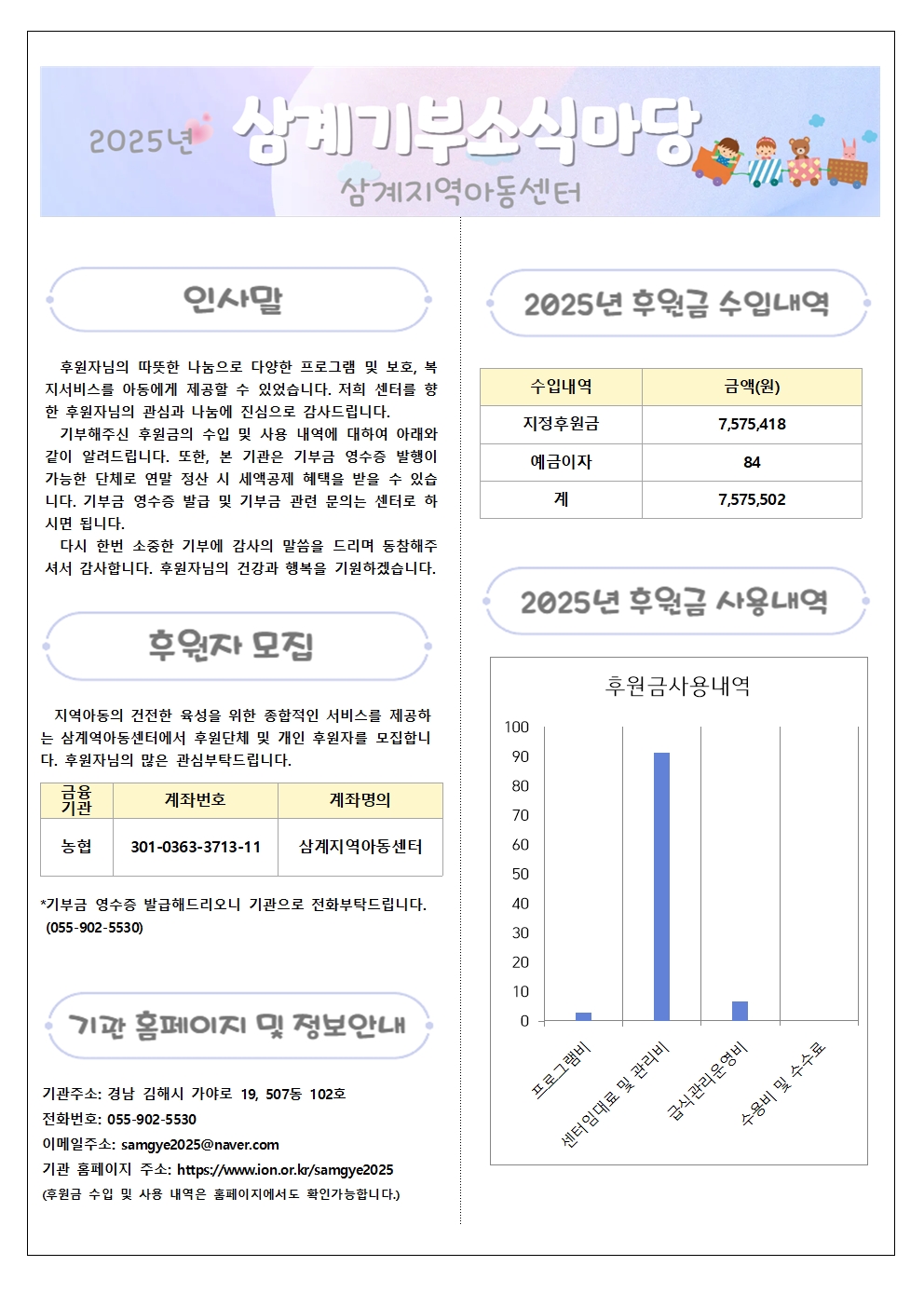 삼계기부소식마당-후원금 수입내역과 사용내역 공개