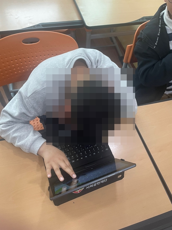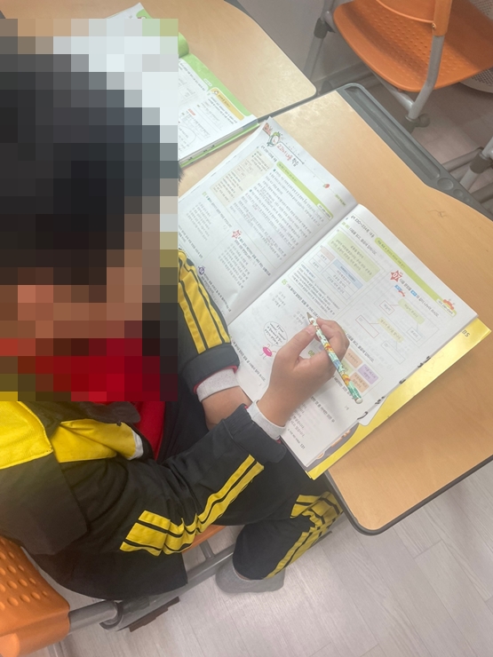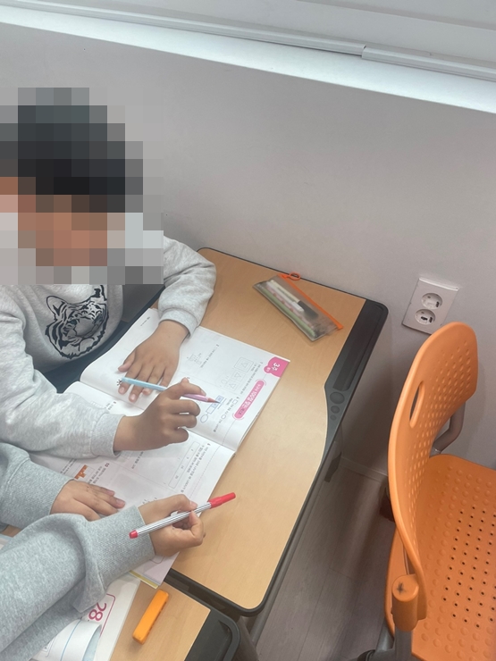중학생 여자아이 한명은 모르는 문제를 미리 체크해 놓았다가 질문을 합니다. 공부를 대하는 방식이 적극적이어서 앞으로의 학습이 더 기대되는 아이입니다.