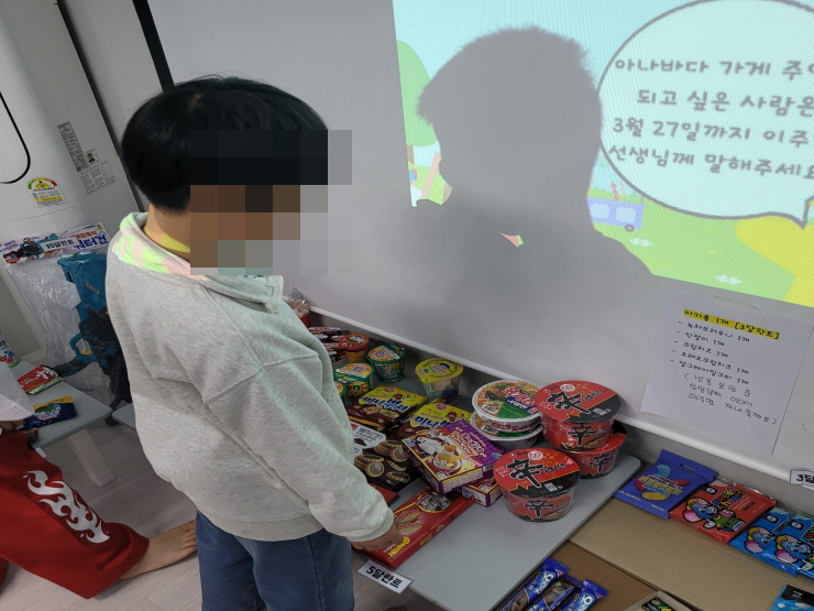 오늘은 사전에 아이들에게 공지된 날인 여우별 마켓과 아나바다가 진행되었다. 오늘은 다른 날과 달리 조금 더 일찍 진행하였다. 아나바다는 1시 30분부터, 여우별 마켓은 2시부터 시작하였다. 아나바다 행사에서 자신을 물건을 파는 아이들은 센터에서 오자말자 물품을 진열하는 모습을 보였다.
