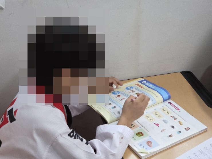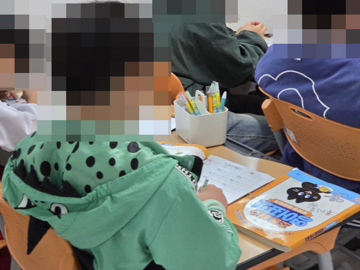 6학년 남자아이는 문장을 읽고 쓰면서 그 뜻을 익혔다. 지난번에는 학습량이 작아서 5학년 여자아이, 다른 6학년 남자아이보다 진도가 늦지만, 오늘은 2장을 열심히 잘 하여서 칭찬하였다.