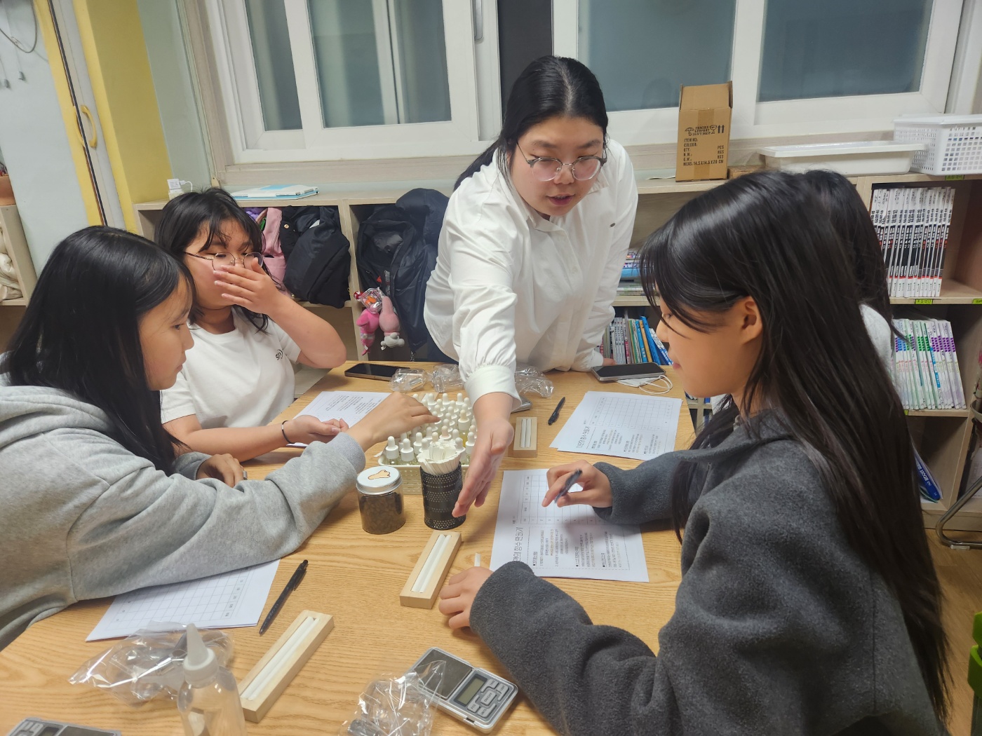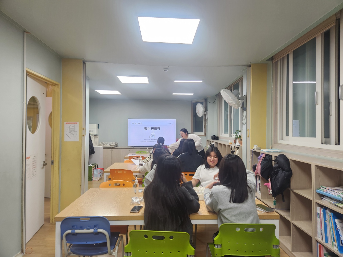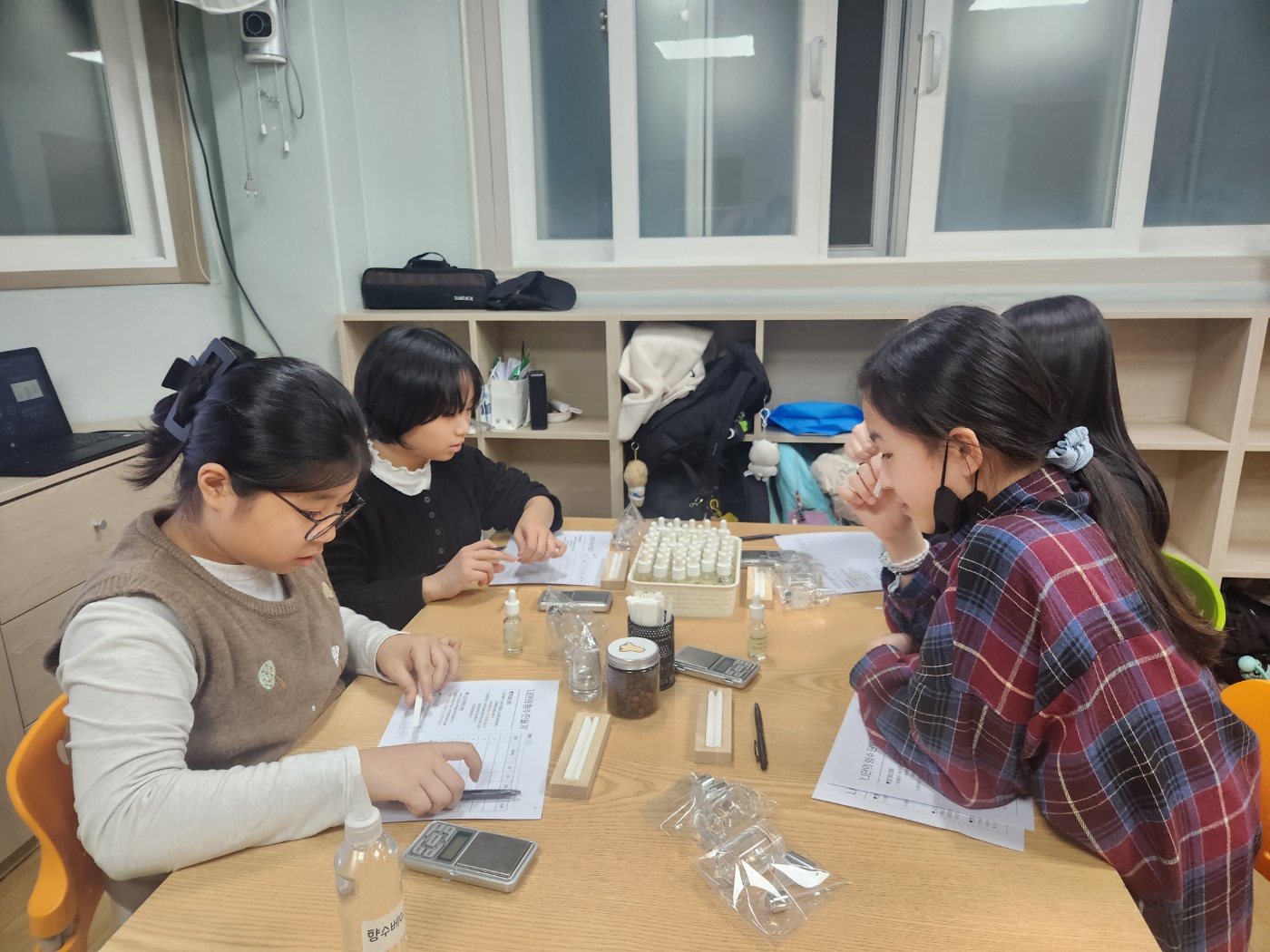 5학년과 6학년 중학생이 함께 어울려 나만의 향수만들기수업을 진행했습니다! 강사님이 오셔서 먼저, ppt를 통해 향의 종류와 만드는 방법을 알아본 후, 섞어보고 싶은 향료 이름을 적어서 정말 나만의 향기나는 향수를 만들어보았습니다!