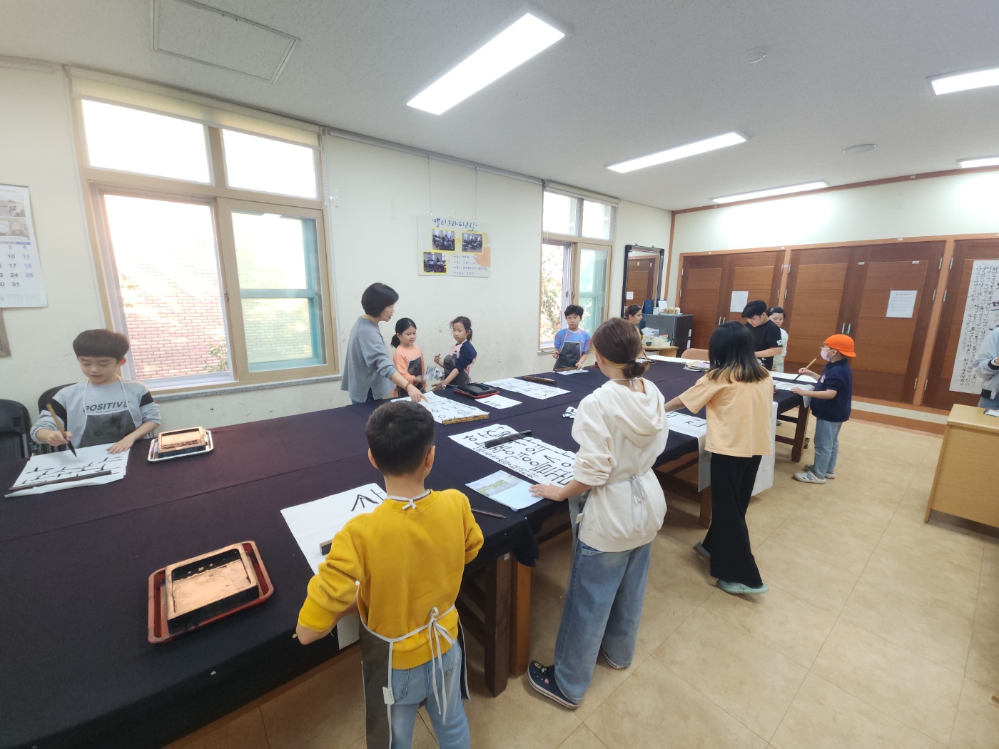 오늘은 정규 프로그램인 서예 시간입니다.