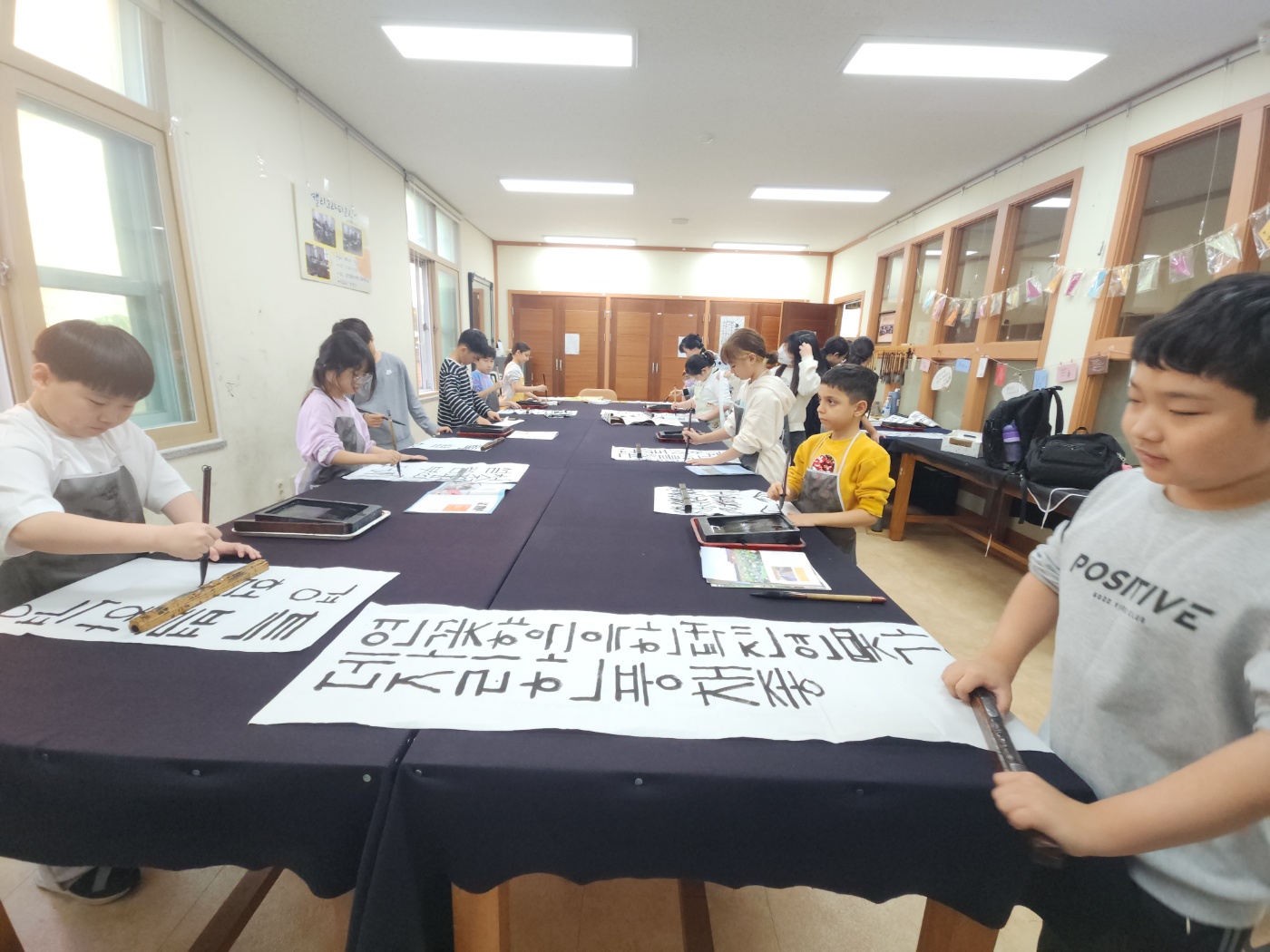 오늘도 열심히 붓글씨를 쓰며 실력을 늘려가는 아이들이었습니다.
