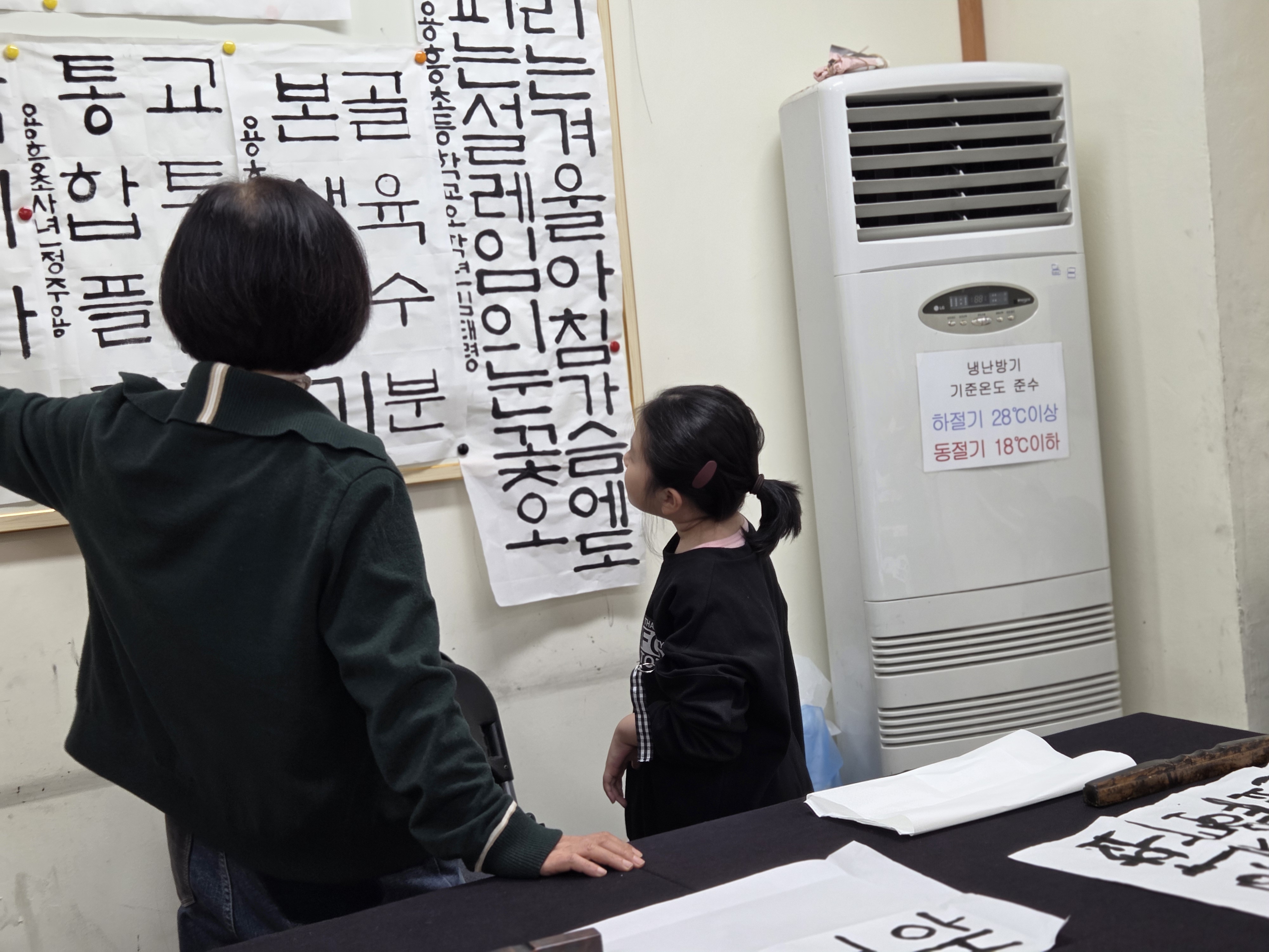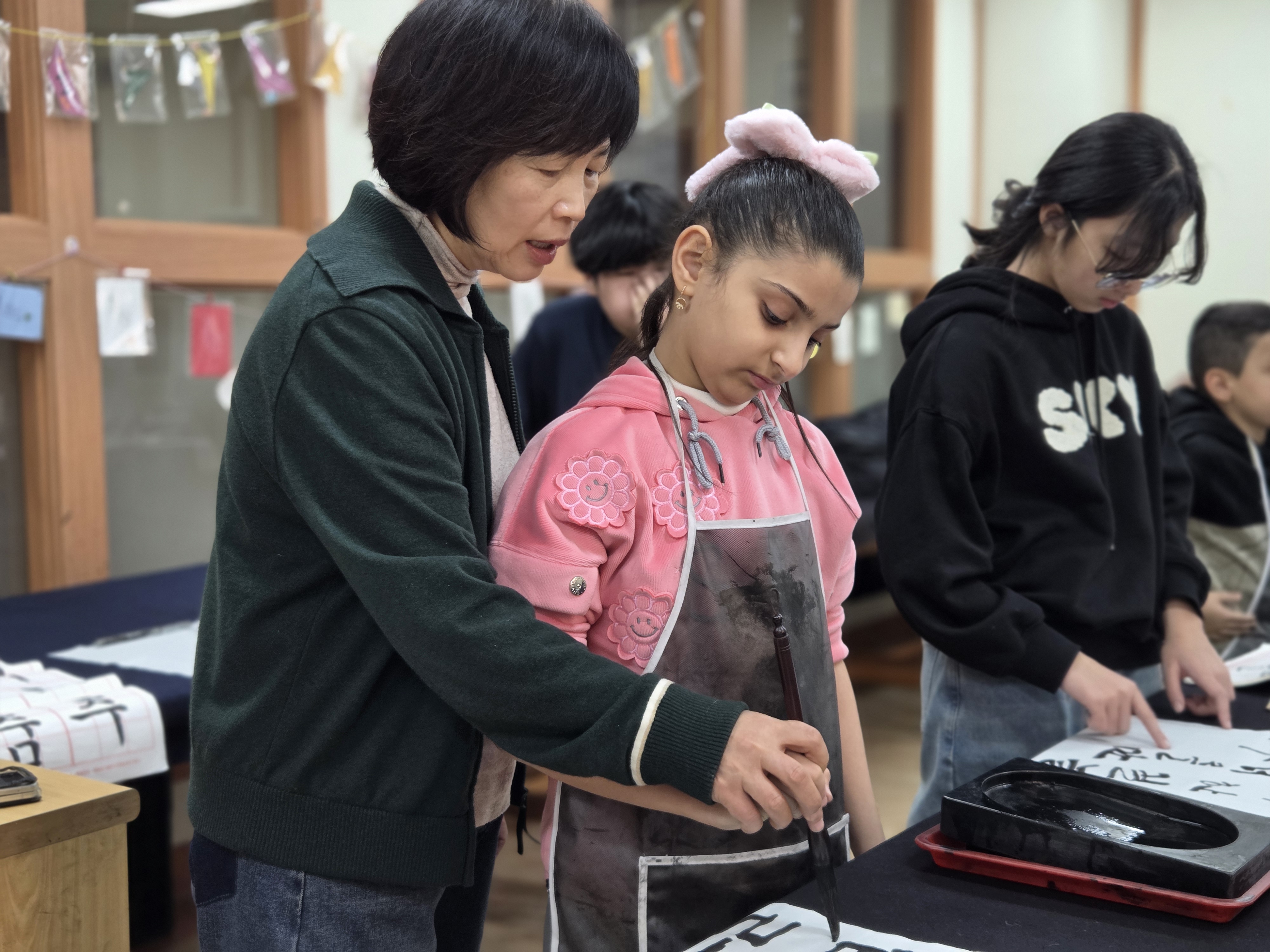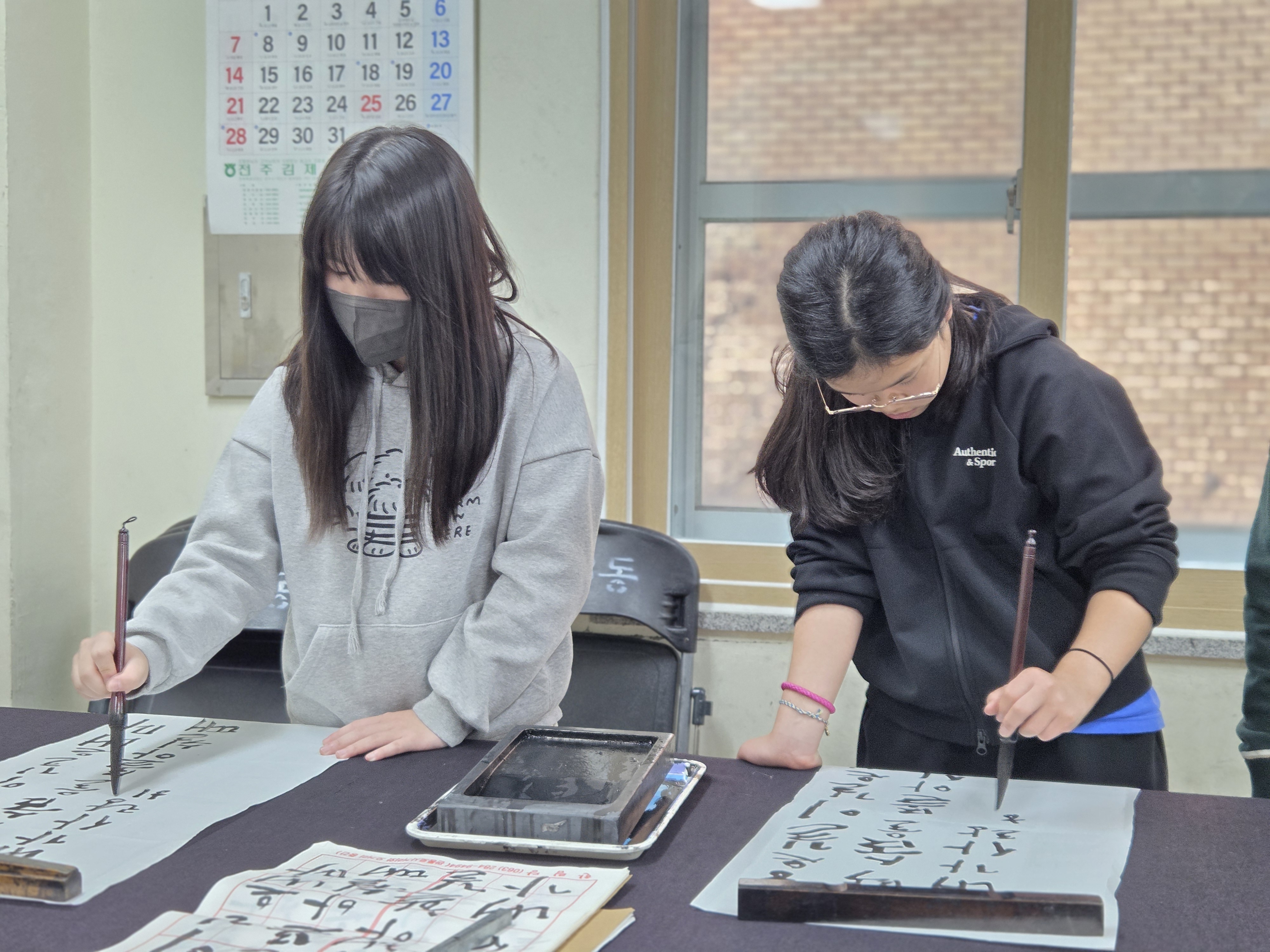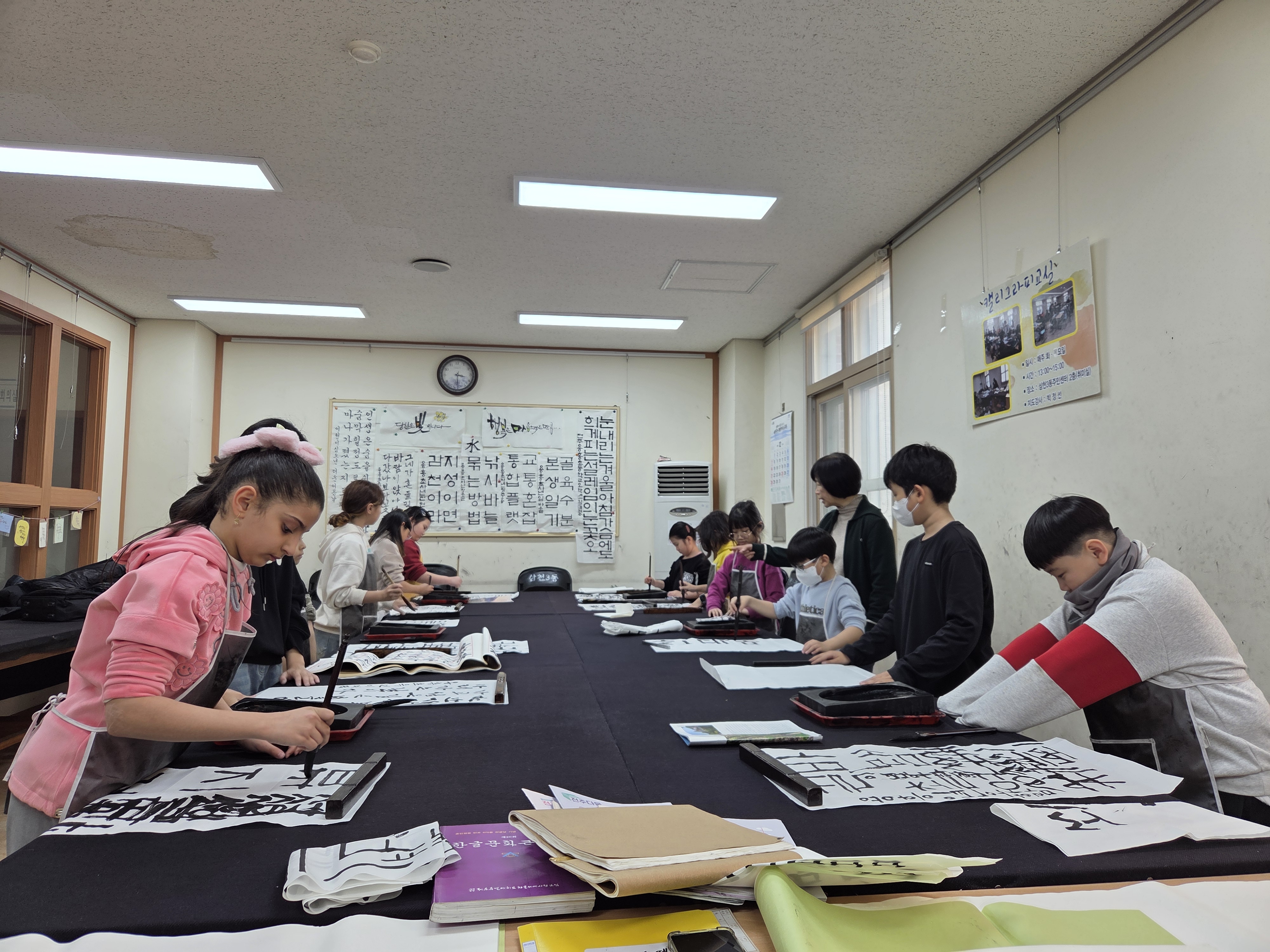 붓글씨를 쓰며 선생님께서 부족한 부분을 알려주는 시간을 가졌습니다.