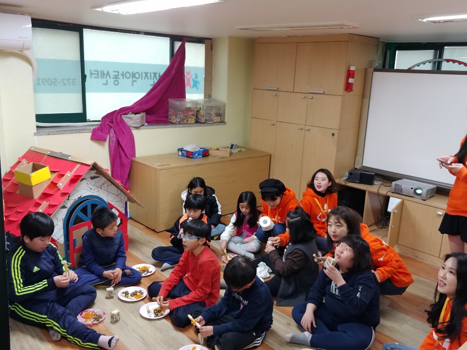 - 대학생 언니, 오빠들과 게임도 하고 수제비도 만들고, 김치부침개, 호박전도 만들어 먹었어요.