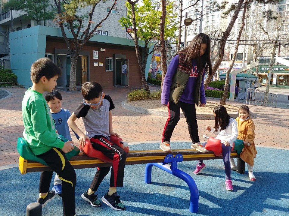 - 점핑하우스에서, 놀이터에서, 보드게임, 방송댄스 하면서 즐거운 시간을 보내고 있어요.